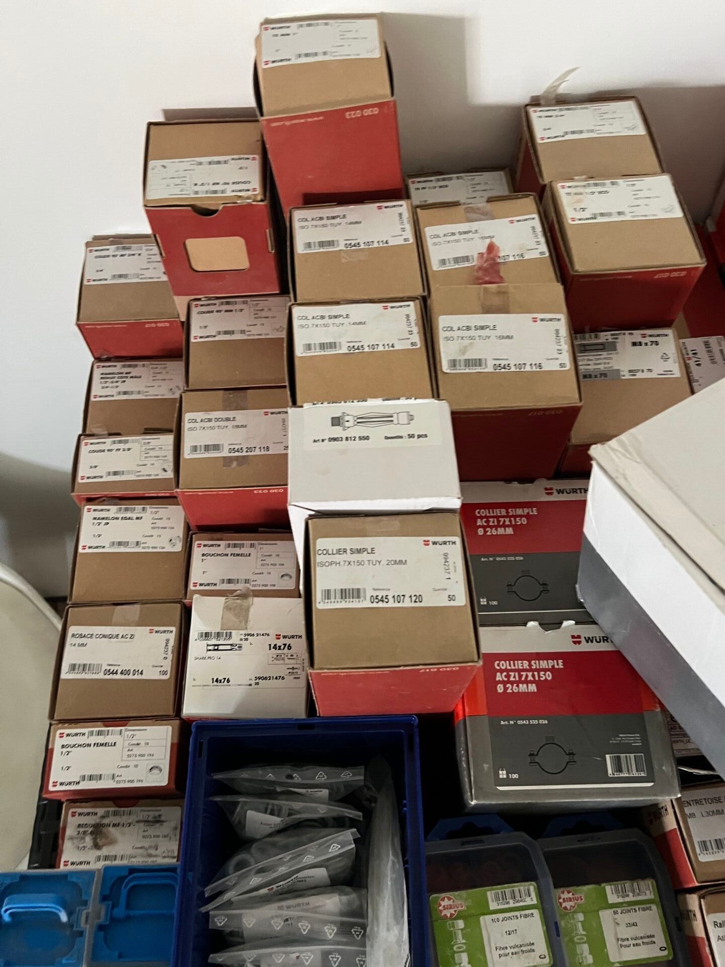 Stock of WURTZ plumbing screws, clamps, etc.
