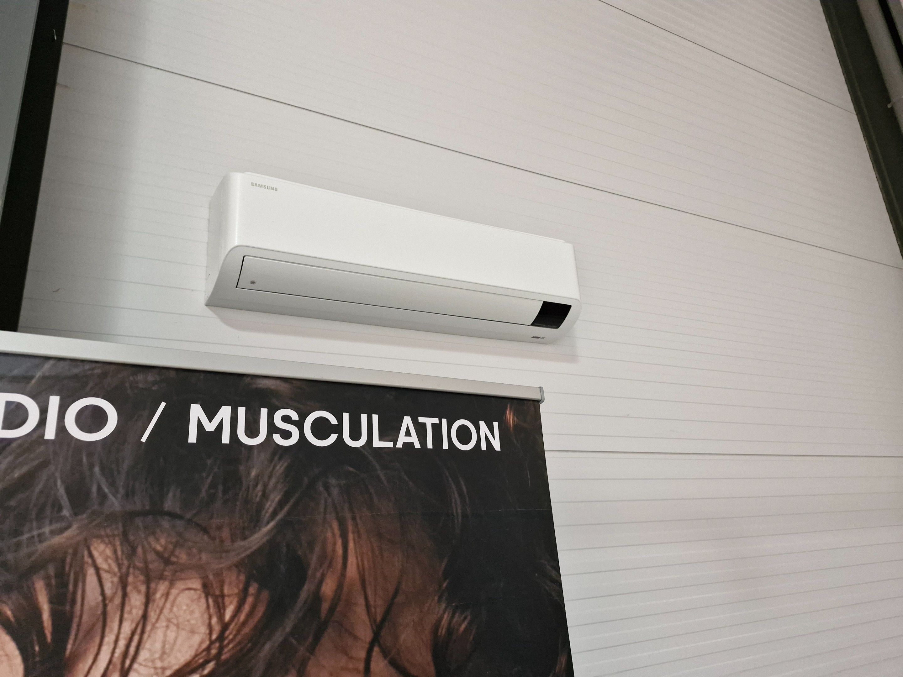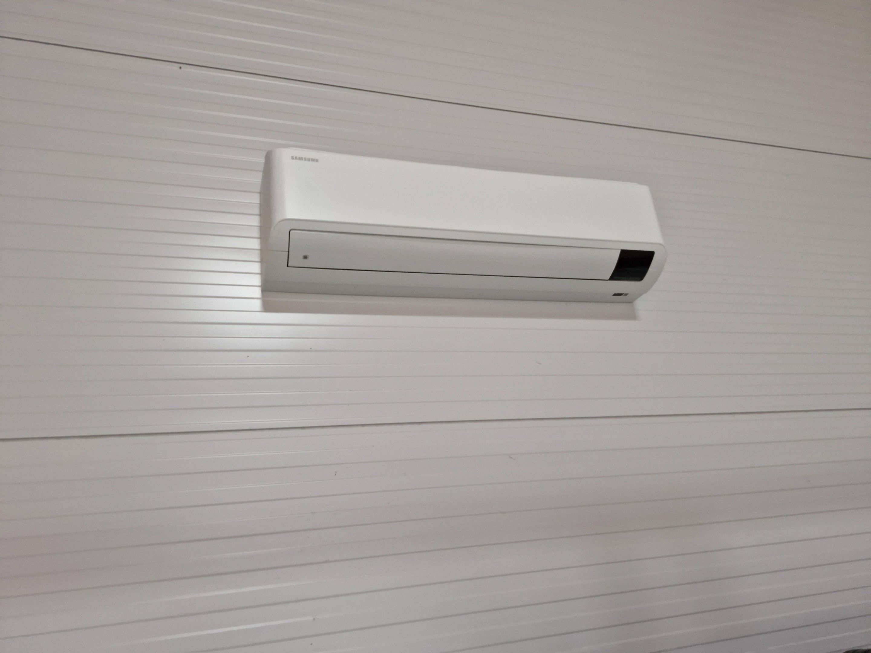 Five SAMSUNG wall-mounted air conditioners and five remote controls (the five units are located outside at the rear of the building)