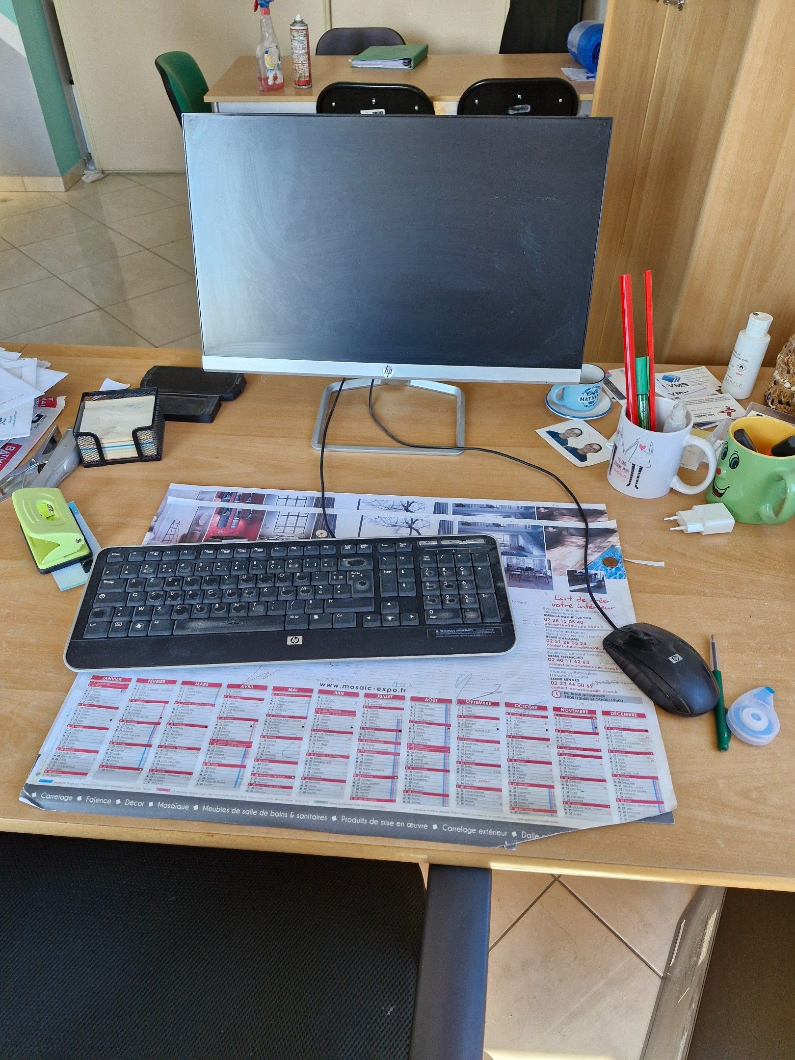 Stationary computer including: HP monitor, HP tower and HP wired mouse and keyboard