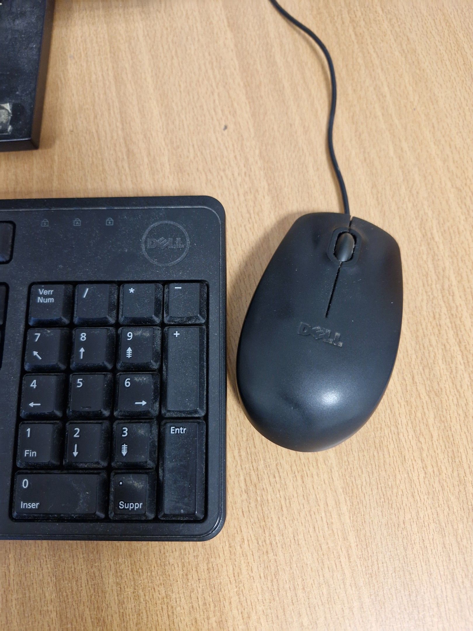 Fixed computer including: DELL screen, DELL wired keyboard and mouse and DELL central processing unit