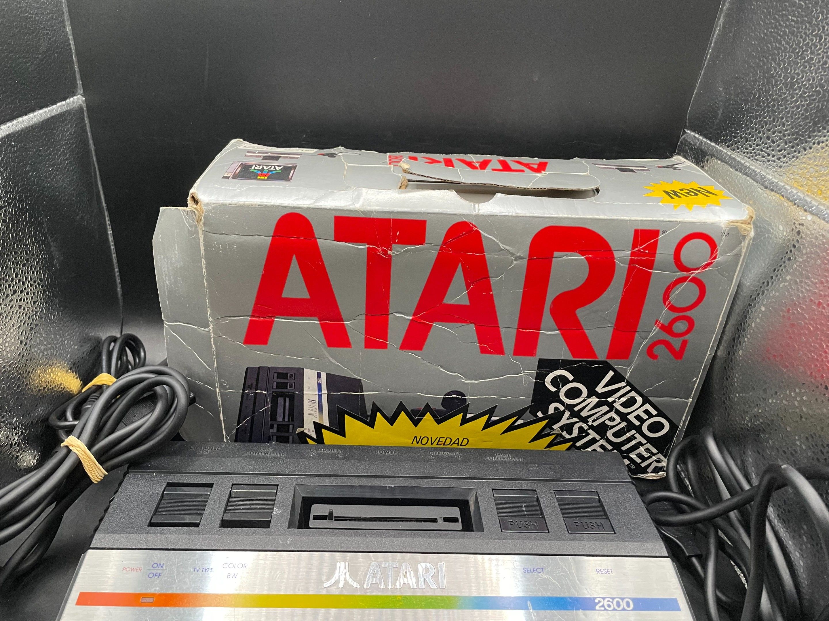 Atari 2600 console in original box (including cables and two joysticks)