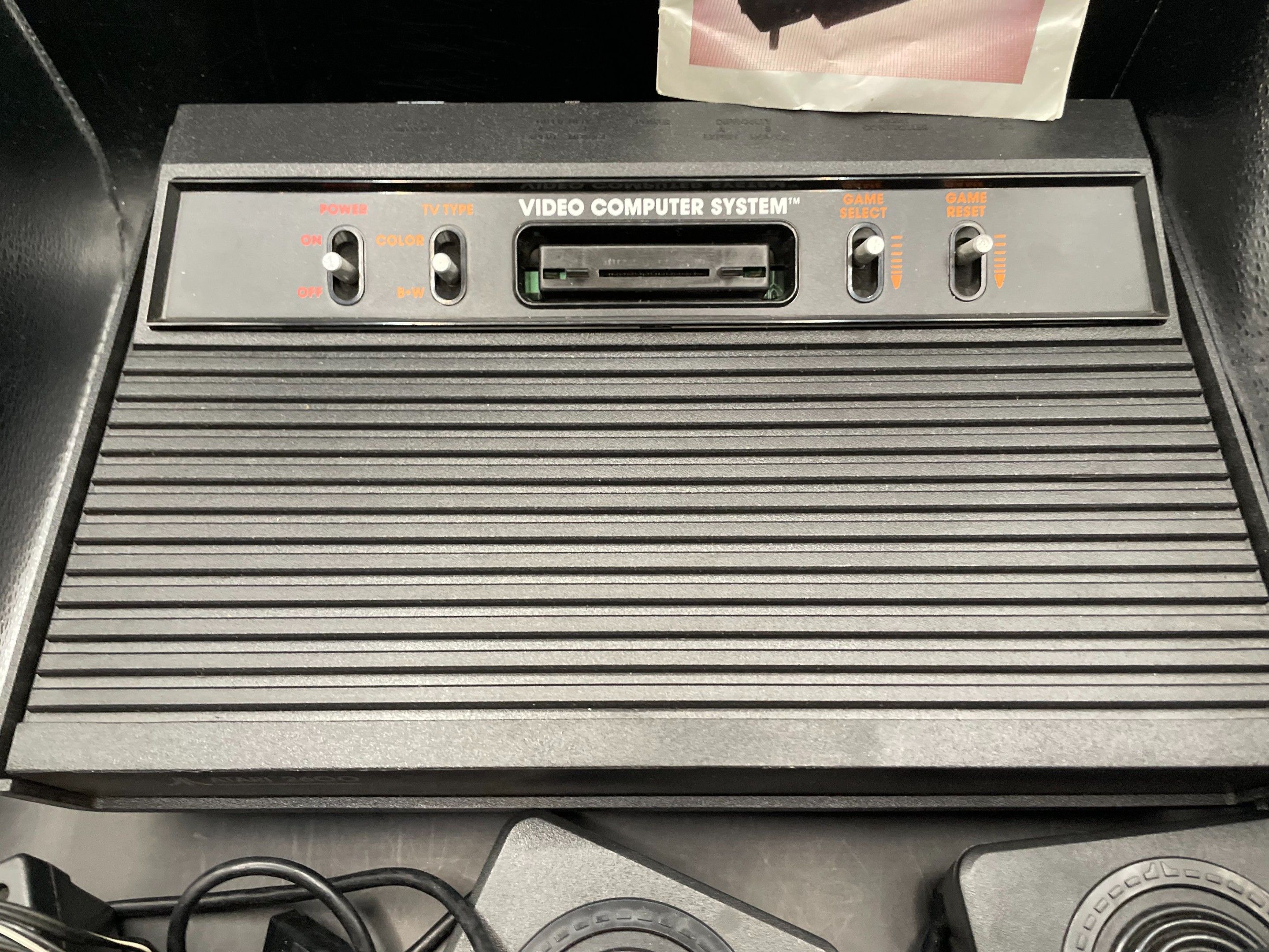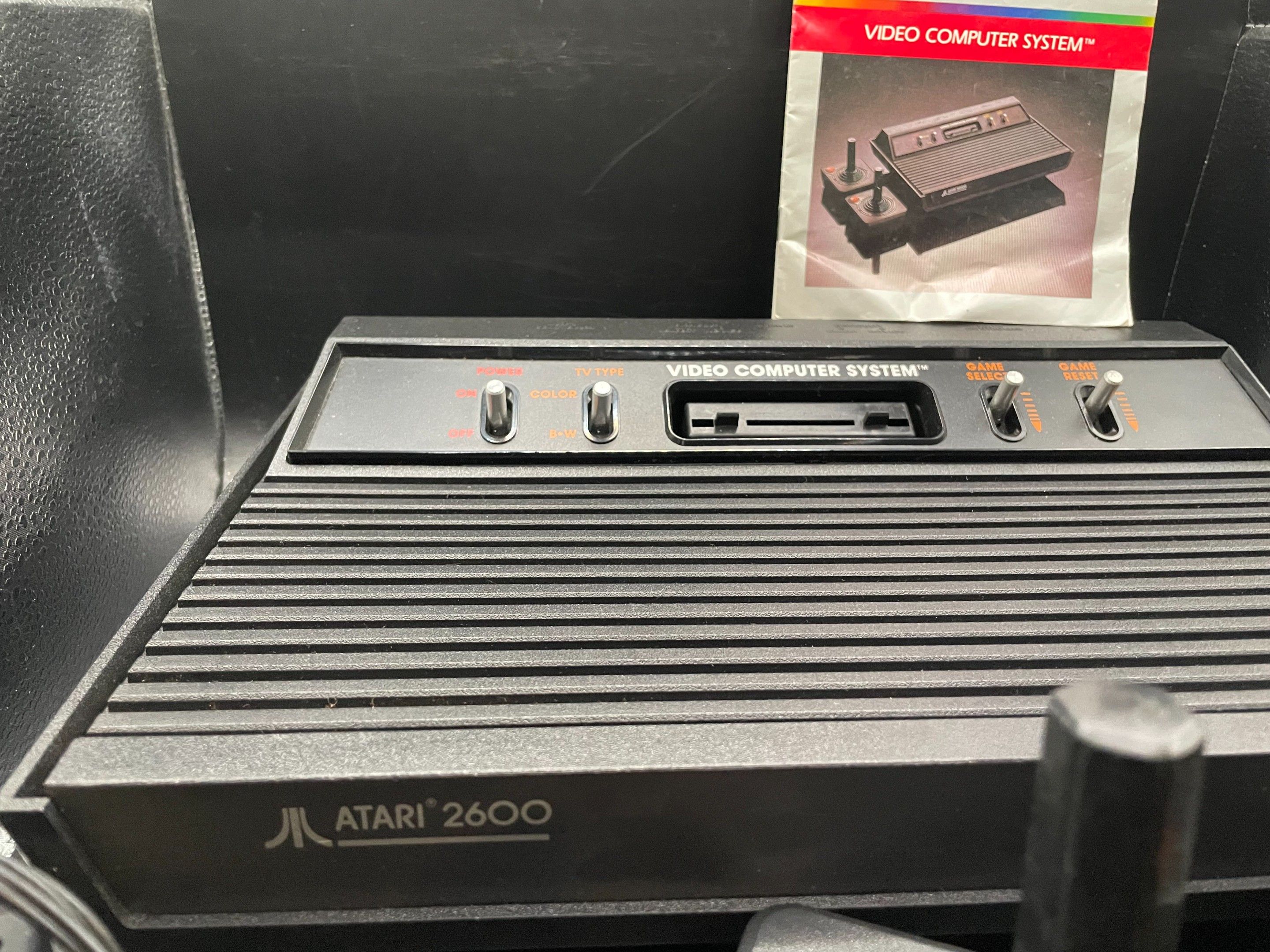Atari 2600 console in original box (including cables, instructions and two joysticks)