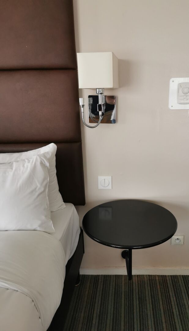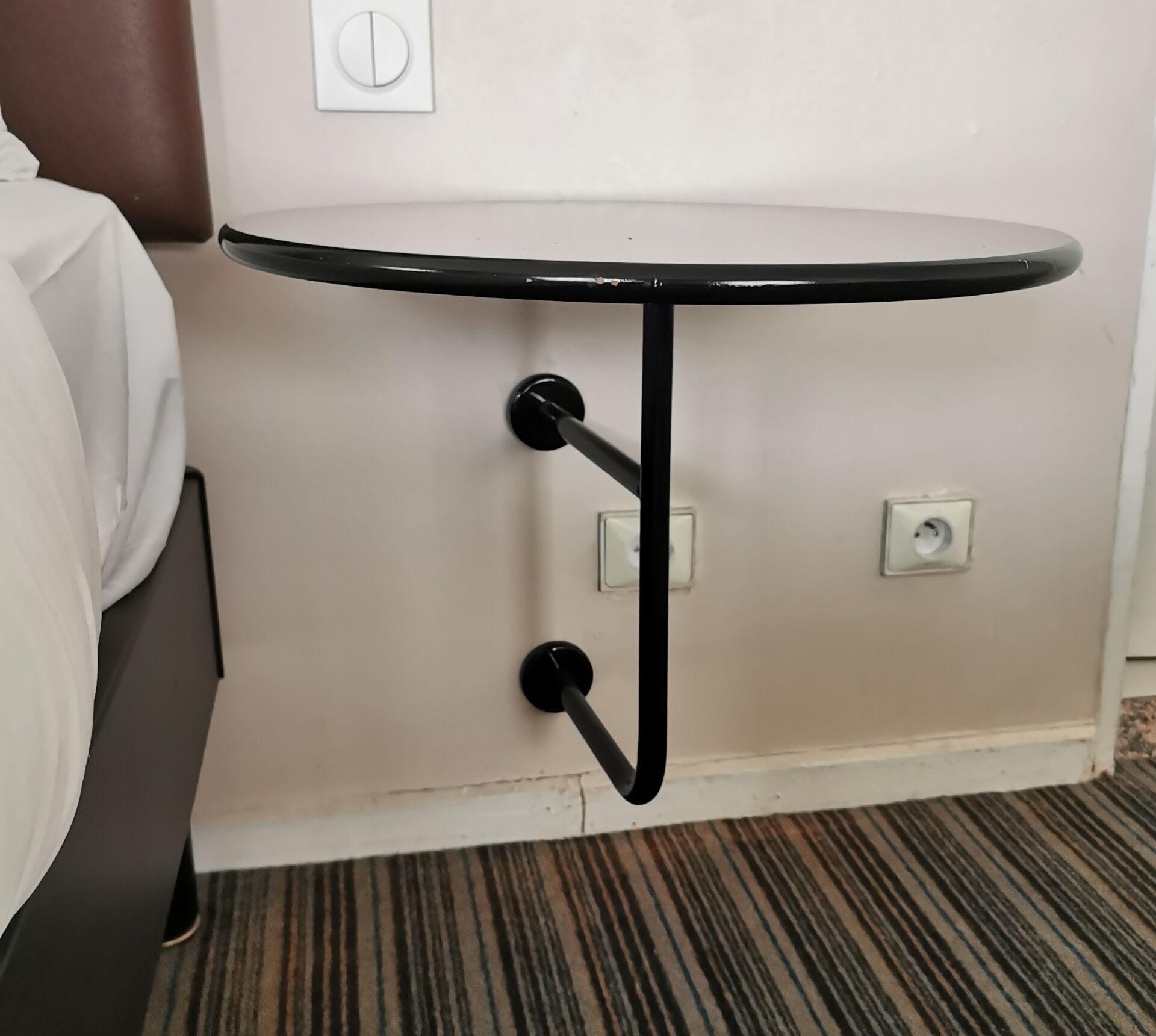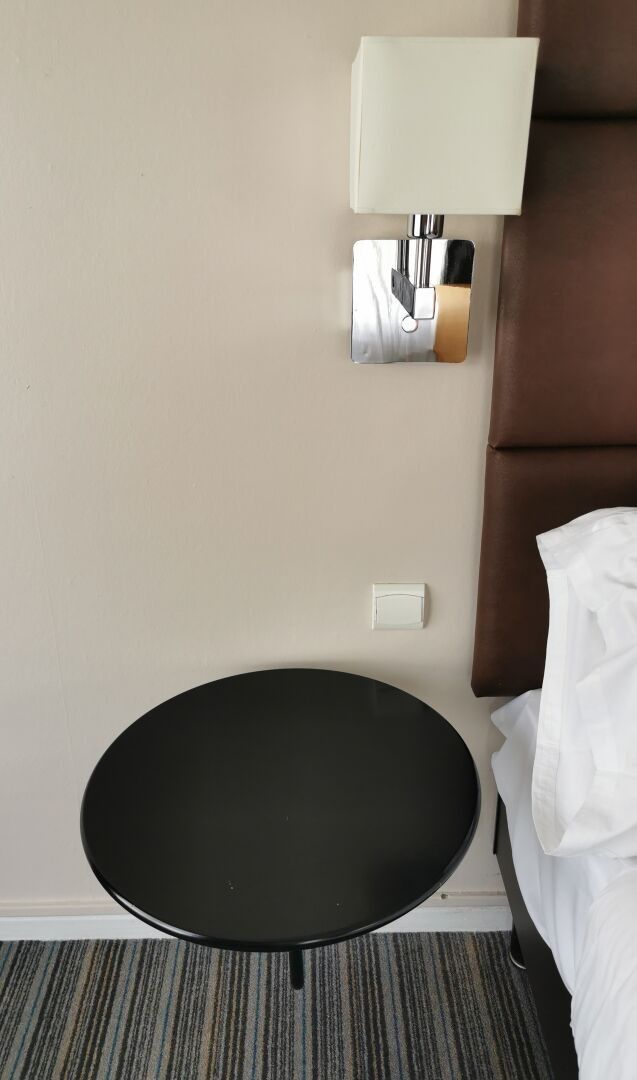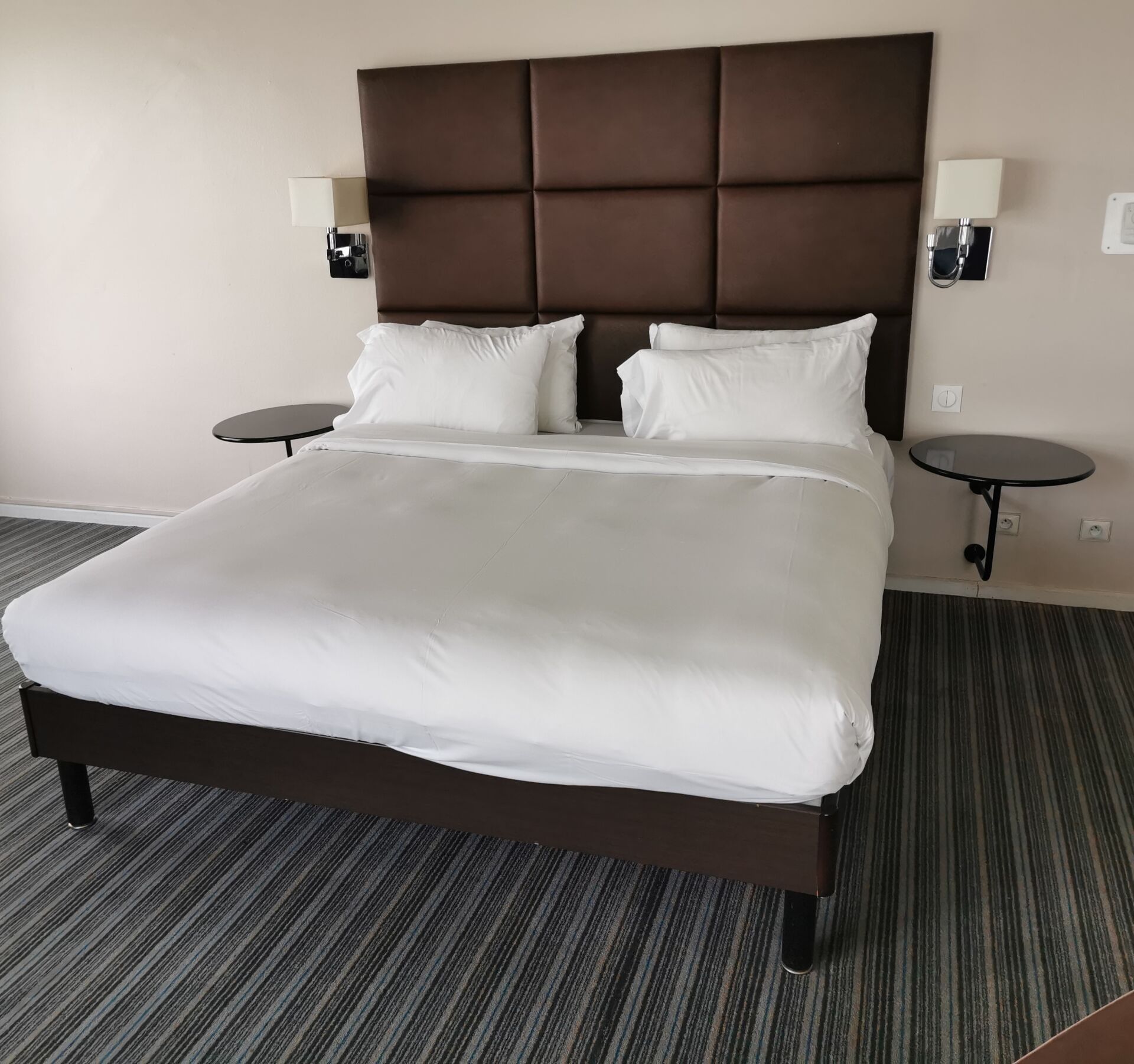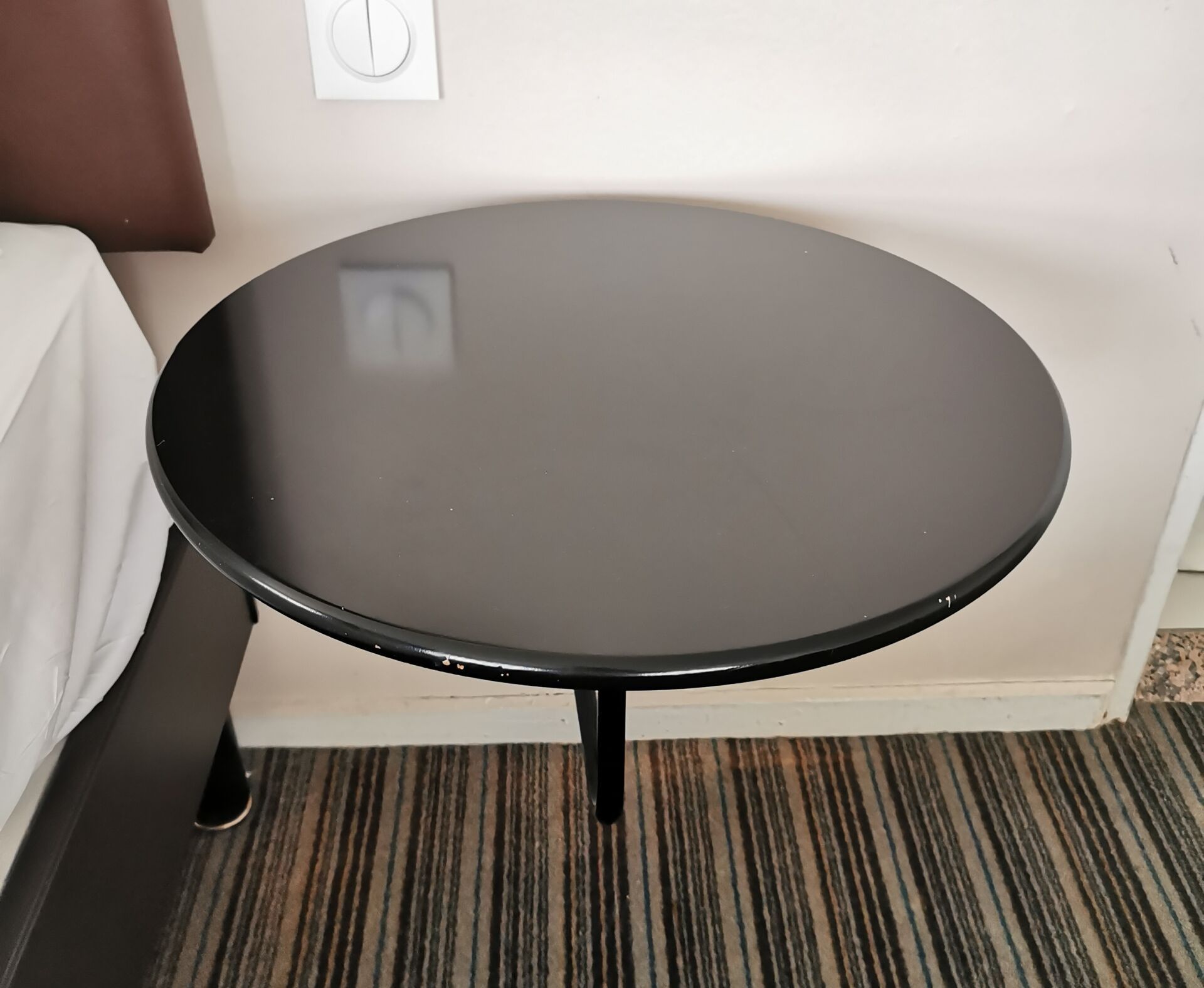 - 2 blackened wooden circular bedside tables (diameter 52cm)