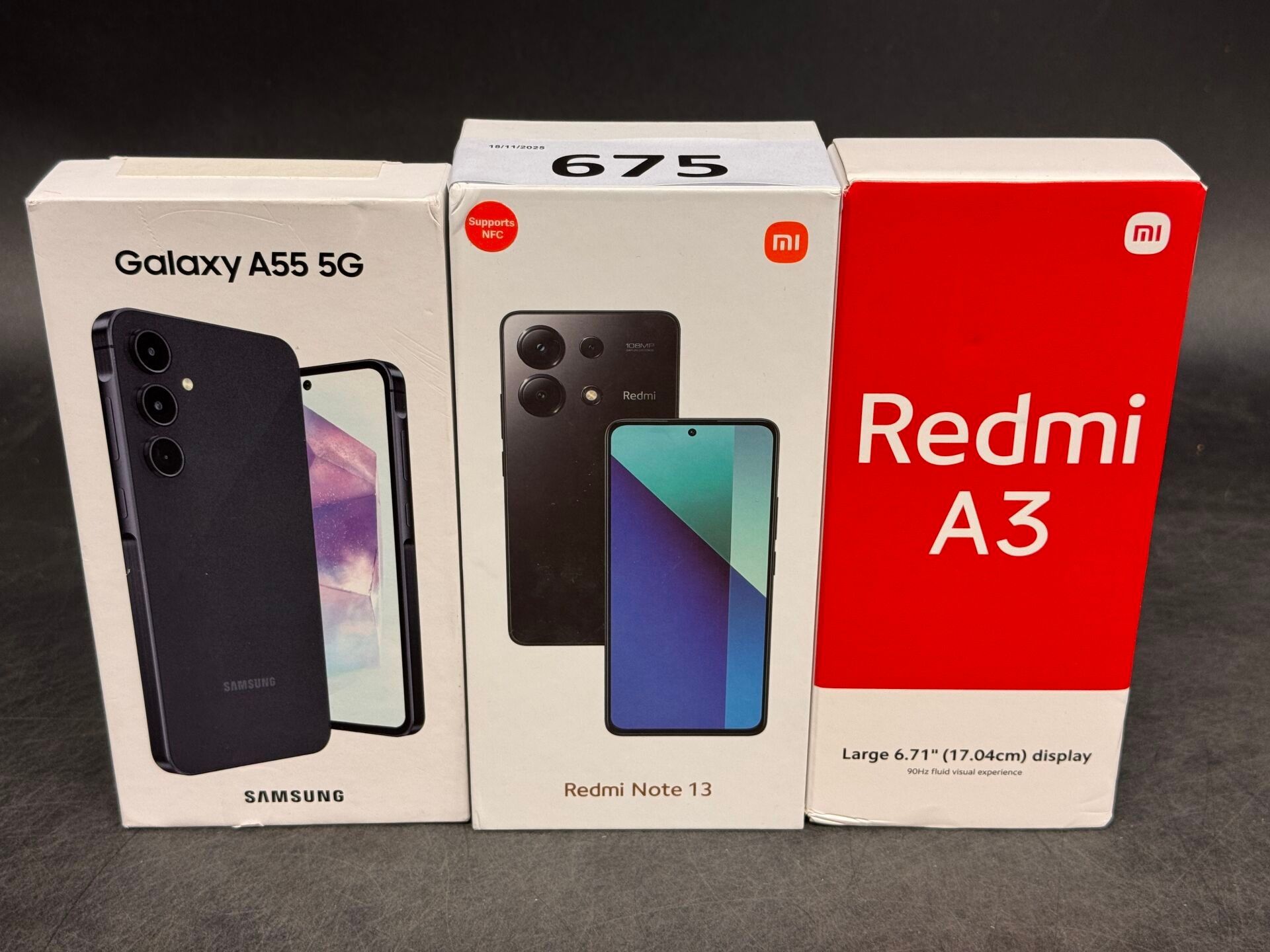 3 PORTABLE PHONES: REDMI NOTE 13 / REDMI A3 / SAMSUNG GALAXY A55 5G (with seals) POSSIBLE SHIPPING (this lot to you in mainland France for €27.45) Lot from unclaimed parcels: operating condition not guaranteed, may be blocked)