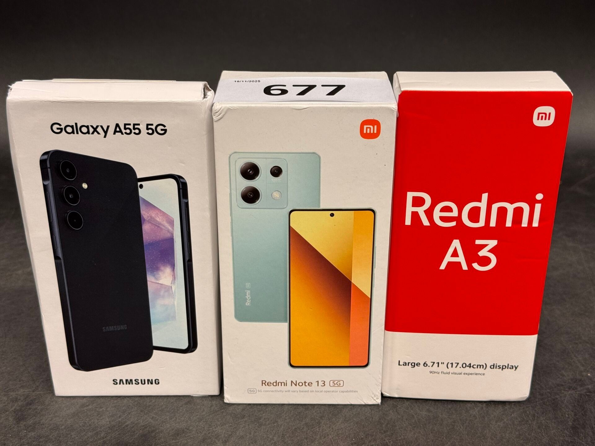 3 PORTABLE PHONES: REDMI NOTE 13 / REDMI A3 / SAMSUNG GALAXY A55 5G (with seals) POSSIBLE SHIPPING (this lot to you in mainland France for €27.45) Lot from unclaimed parcels: operating condition not guaranteed, may be blocked)