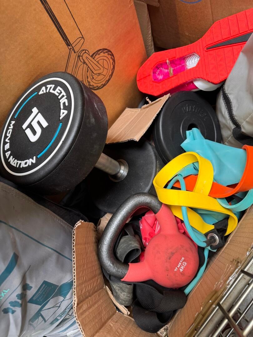 LARGE SET OF SPORT & LEISURE ITEMS, INCLUDING TROTTINETTES, SKATEBOARDS, TENTS, WEIGHTS, FISHING RODS (shipment by quotation) (traces of use, return to seller, transport damage, second hand, as is)