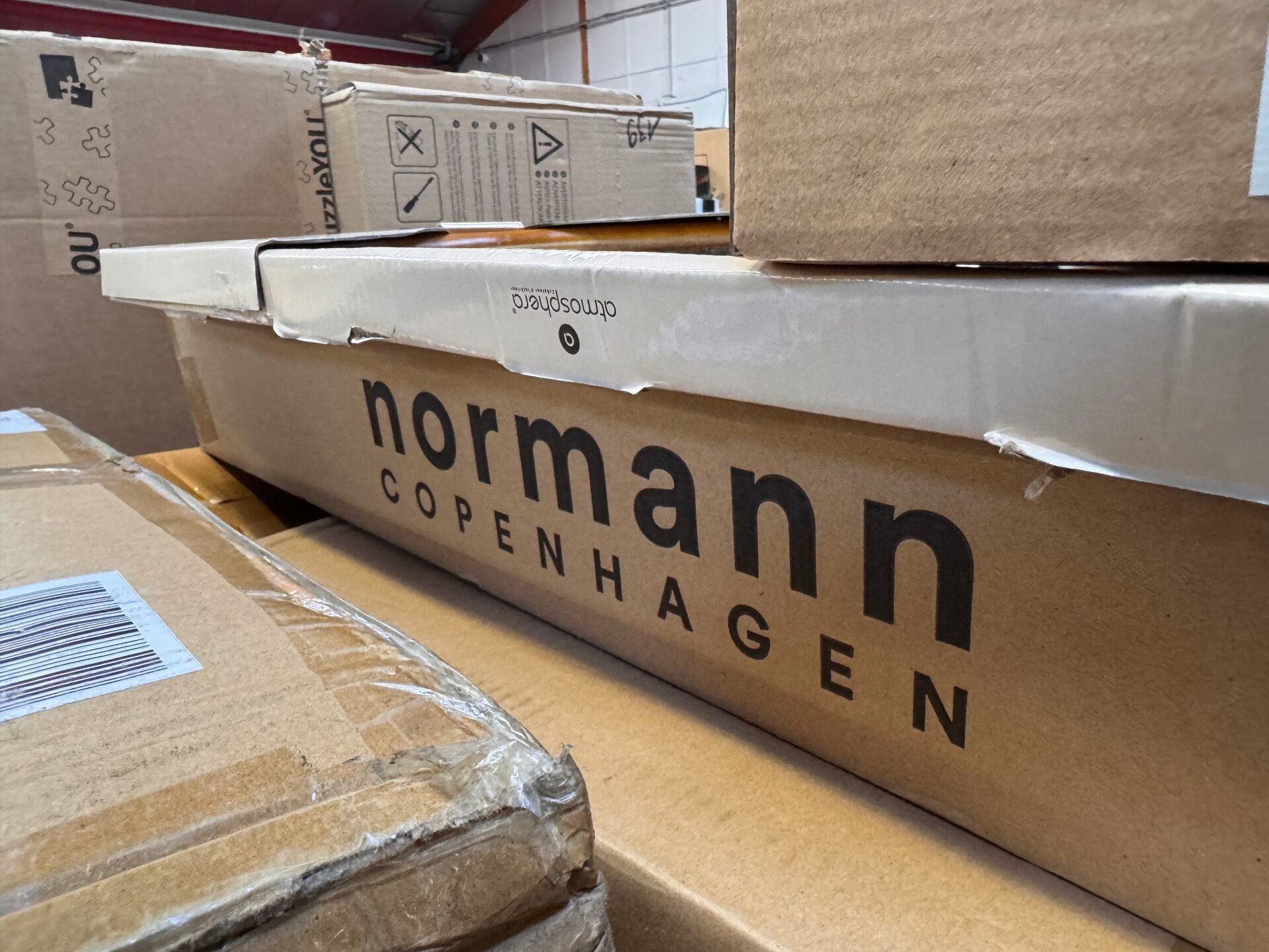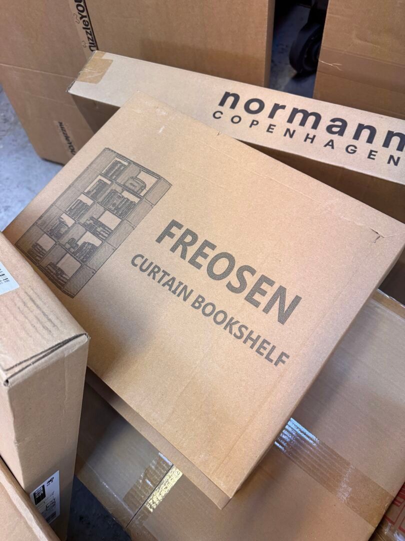 STRONG SET OF SMALL FURNITURE AND DECORATIONS (approx. 1m3) INCLUDING MIRROR, CHAIR, LIBRARY / NORMANN COPENHAGEN, ATMOSHERA, SERAX (shipment by quotation) Lot from unclaimed parcels: working condition not guaranteed.