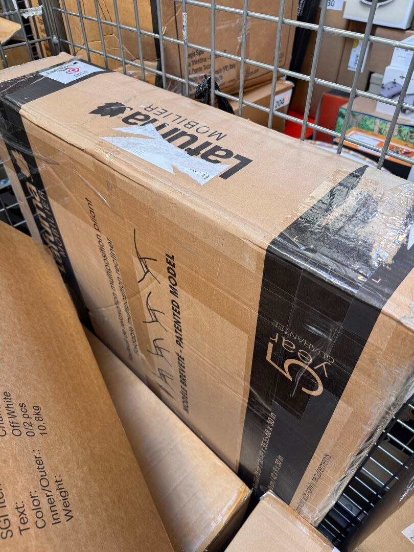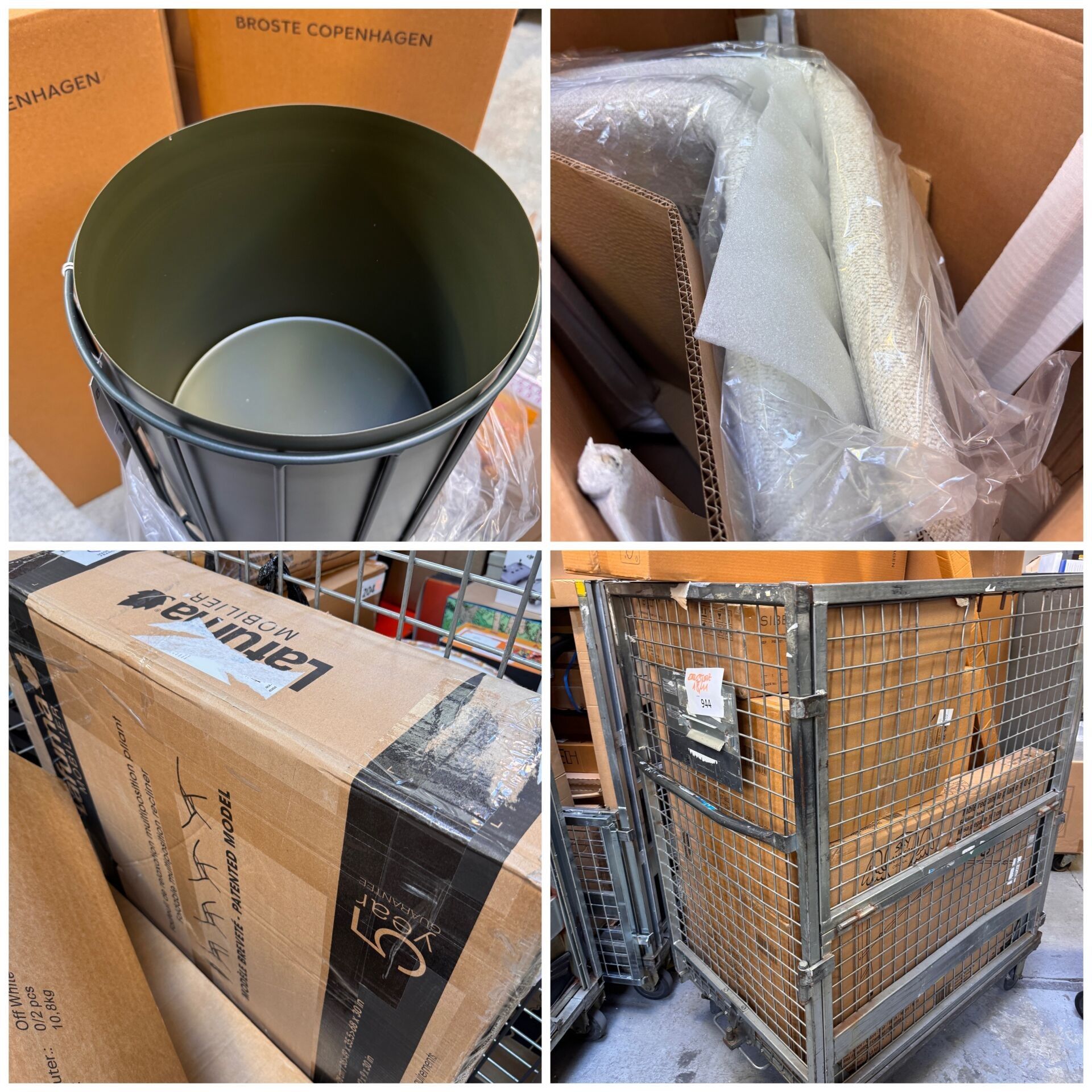STRONG SET OF SMALL FURNITURE AND DECORATIONS (approx. 1m3) INCLUDING CHAIR, TRANSAT / LAFUMA, BROSTE COPENHAGEN (shipment by quotation) Lot from unclaimed parcels: working order not guaranteed.