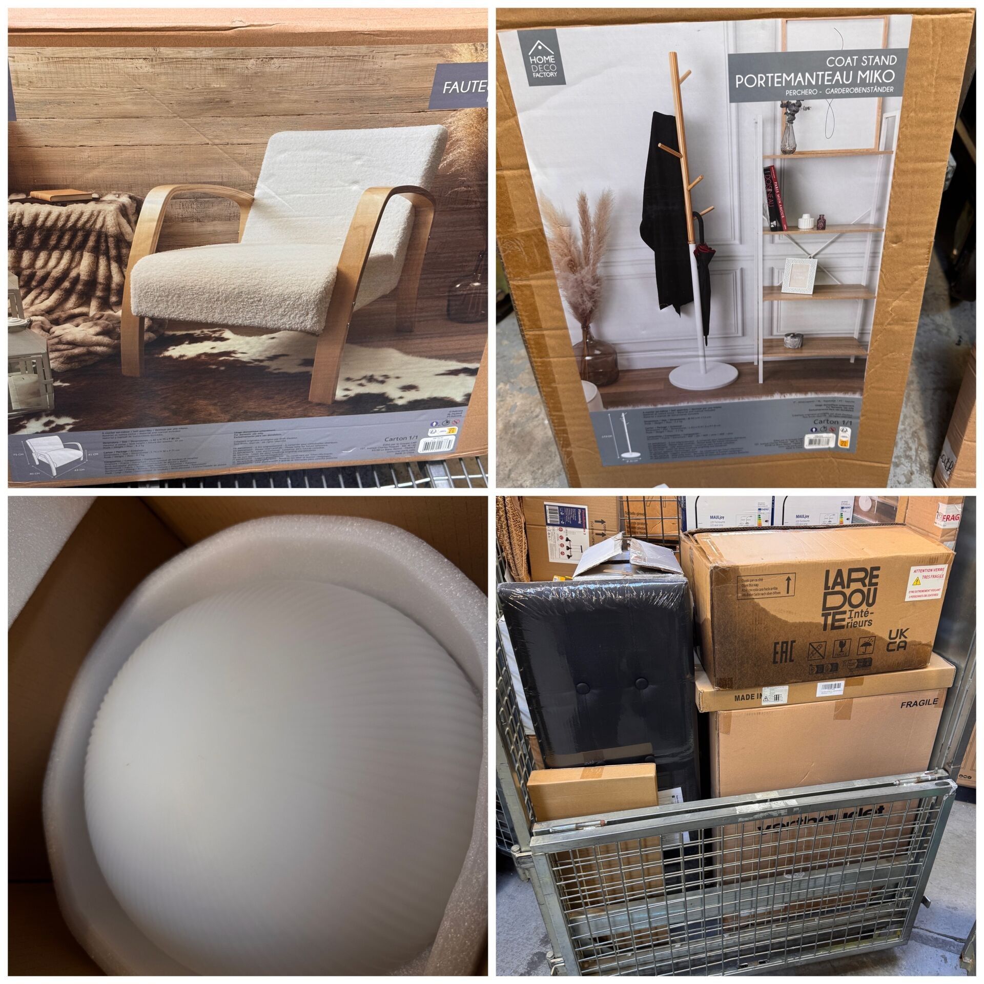 STRONG SET OF SMALL FURNITURE AND DECORATIONS (approx. 1m3) INCLUDING CHAIR, SUSPENSION / VERBAUDET, LOBERON, HOME DECO FACTORY (shipment by quotation) Lot from unclaimed parcels: working condition not guaranteed.