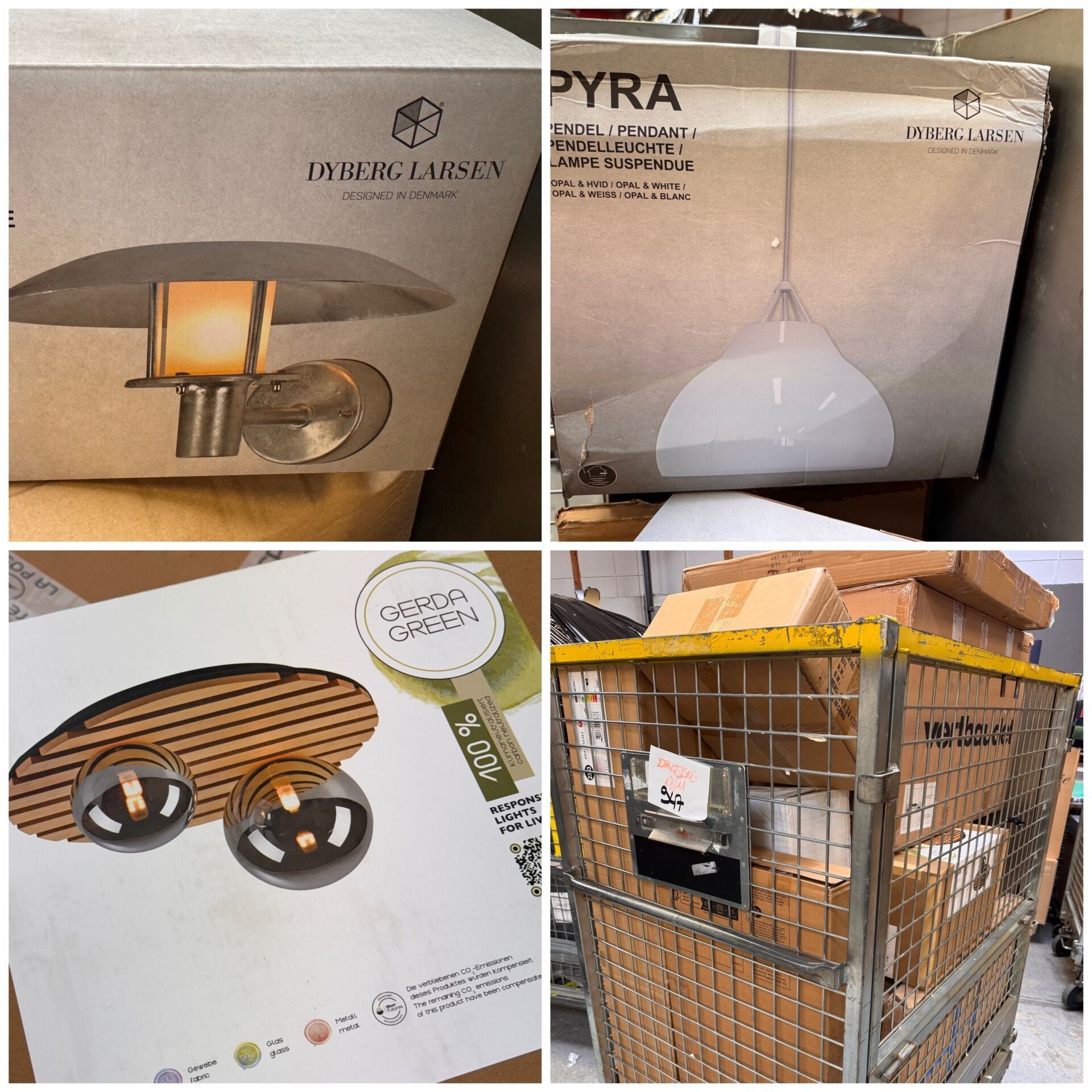 STRONG SET OF SMALL FURNITURE AND DECORATIONS (approx. 1m3) INCLUDING LUMINAIRES, CHAIRS, (shipment by quotation) Lot from unclaimed parcels: working condition not guaranteed.