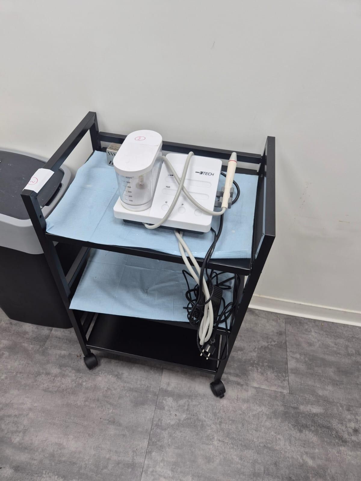 ULTRASONIC 3TECH SCRUBBER on a three-tray metal trolley.