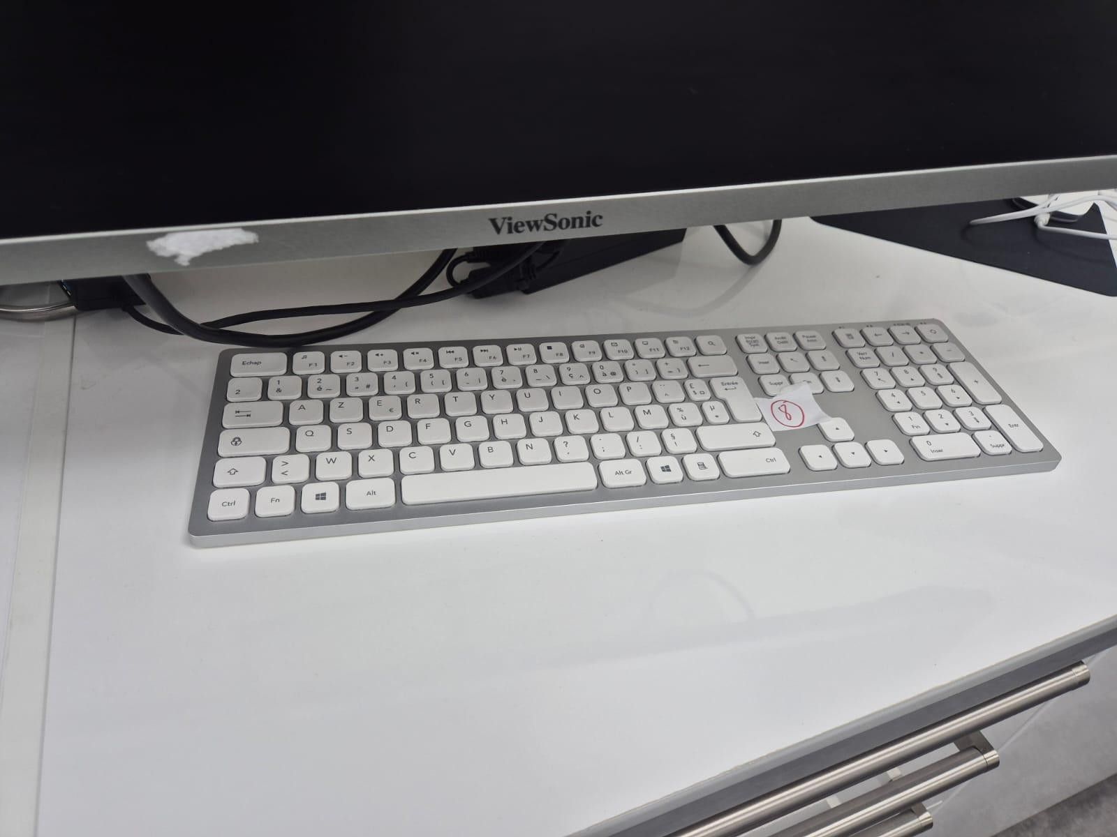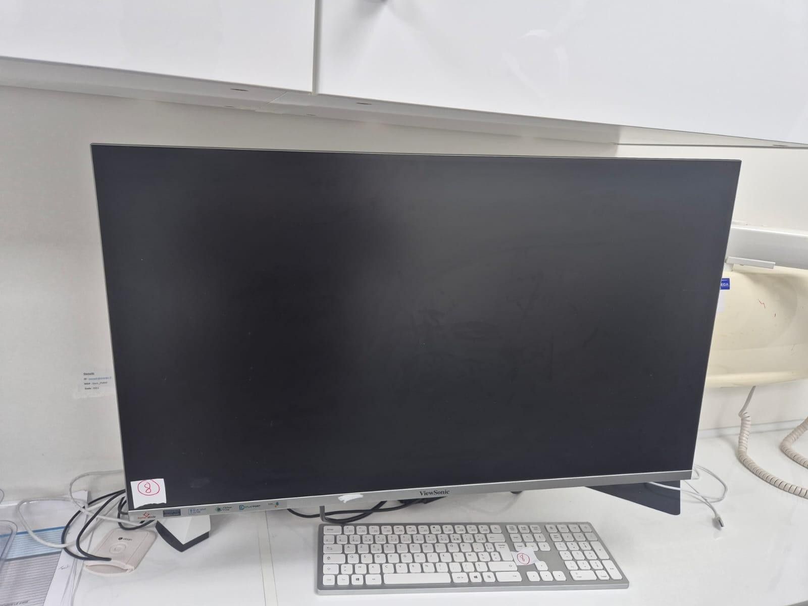 Viewsonic VS17-090 81 cm screen on articulated wall arm with wired keyboard and mouse.