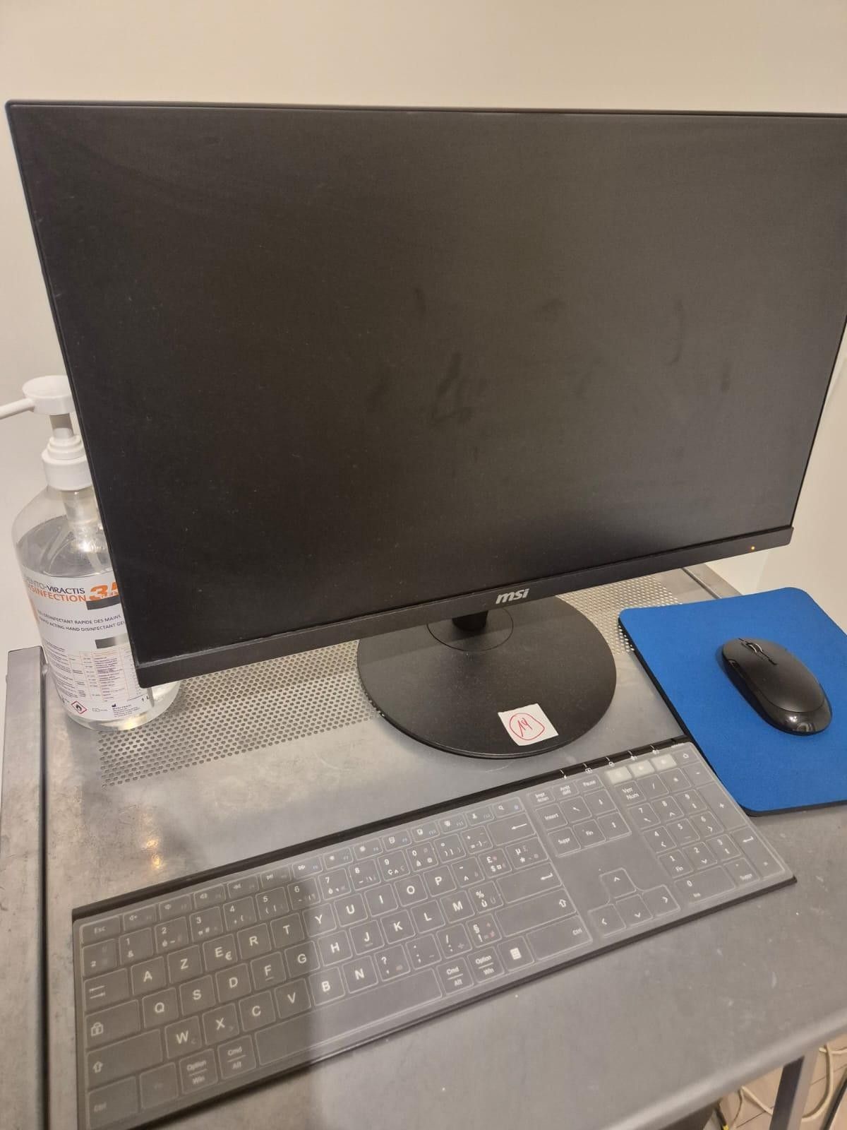Complete computer set (central processing unit, 61 cm screen, keyboard, wireless mouse).