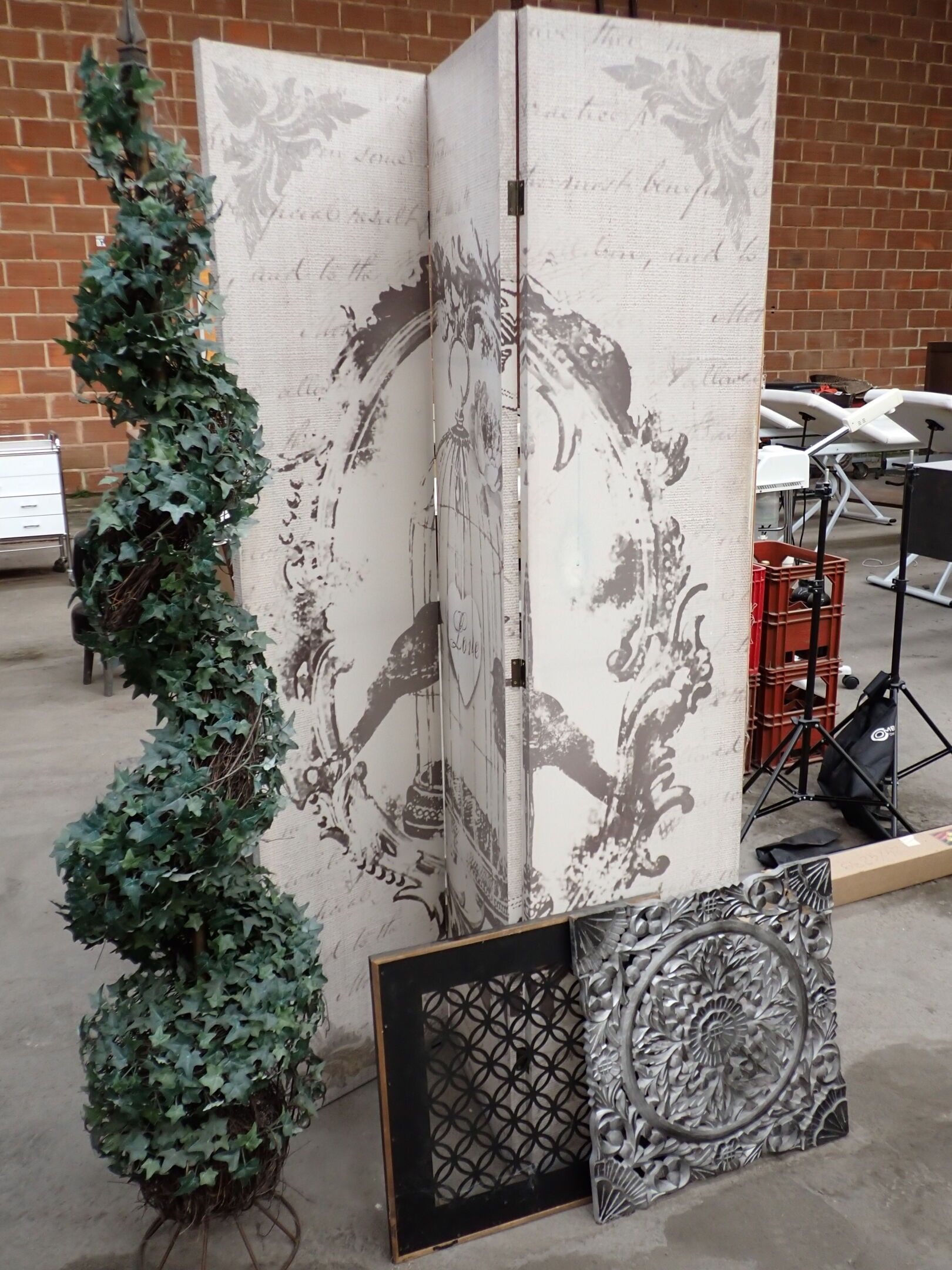 Small lot of small decorations: 2 artificial plants, folding screen, 2 frames, legal lot, Price 10