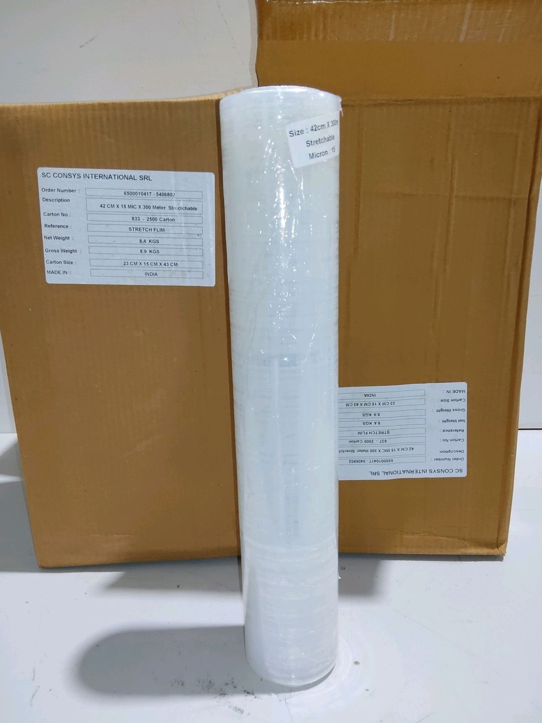Pack of 12 rolls of transparent stretch film with no visible markings - Brand new - Recoverable VAT - This pack can be delivered to you anywhere in mainland France from €36.72 - This pack can be delivered to you anywhere in Europe from €65.88