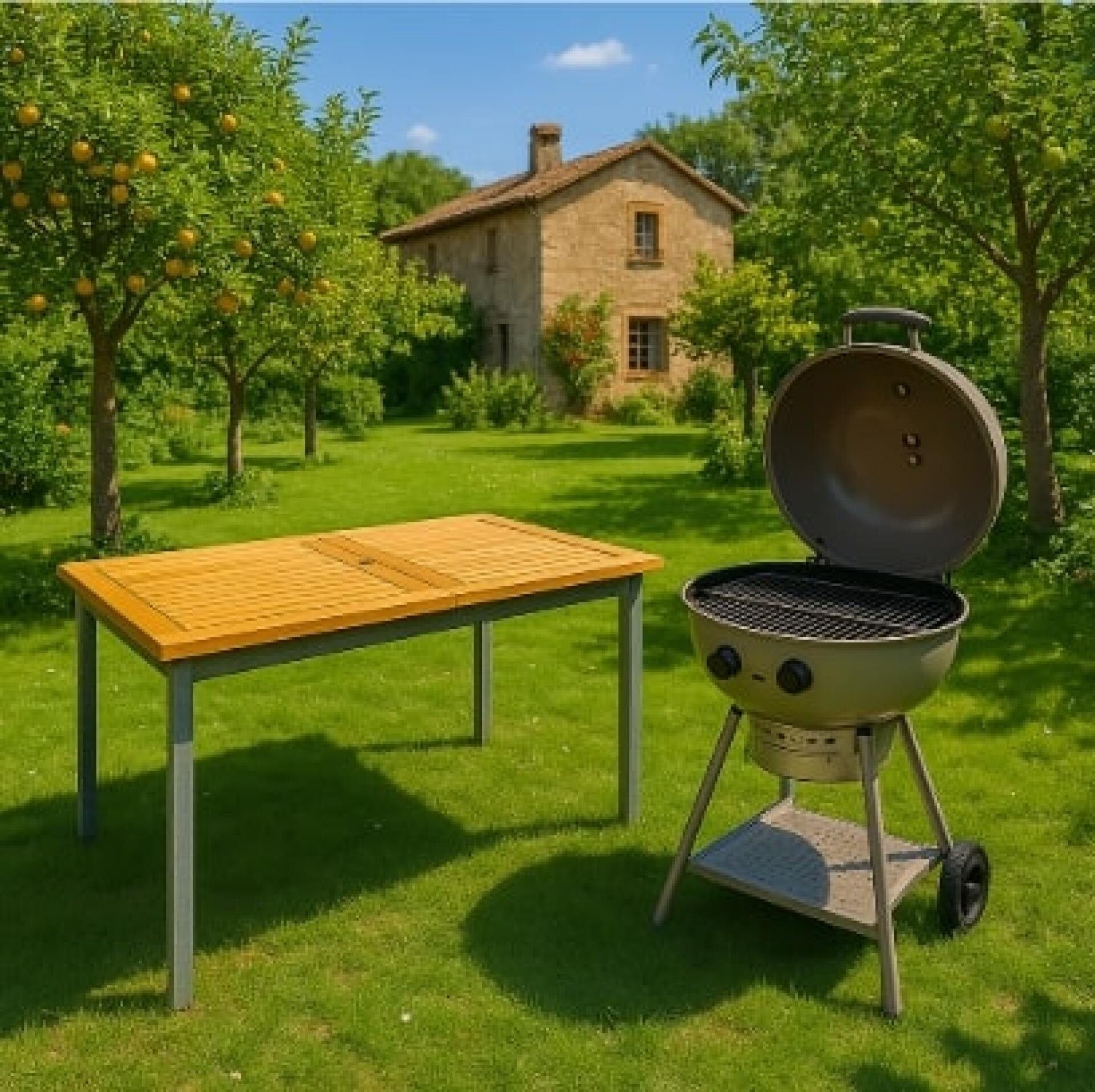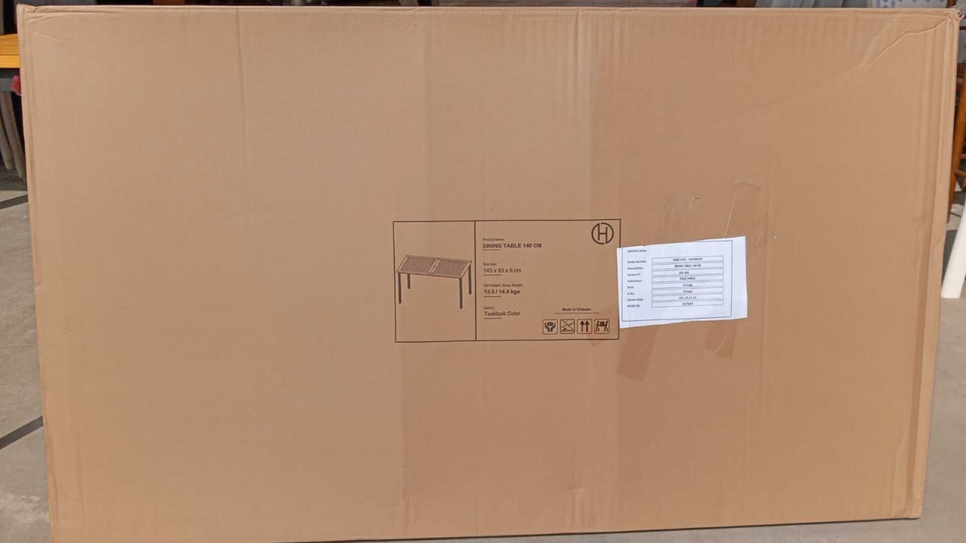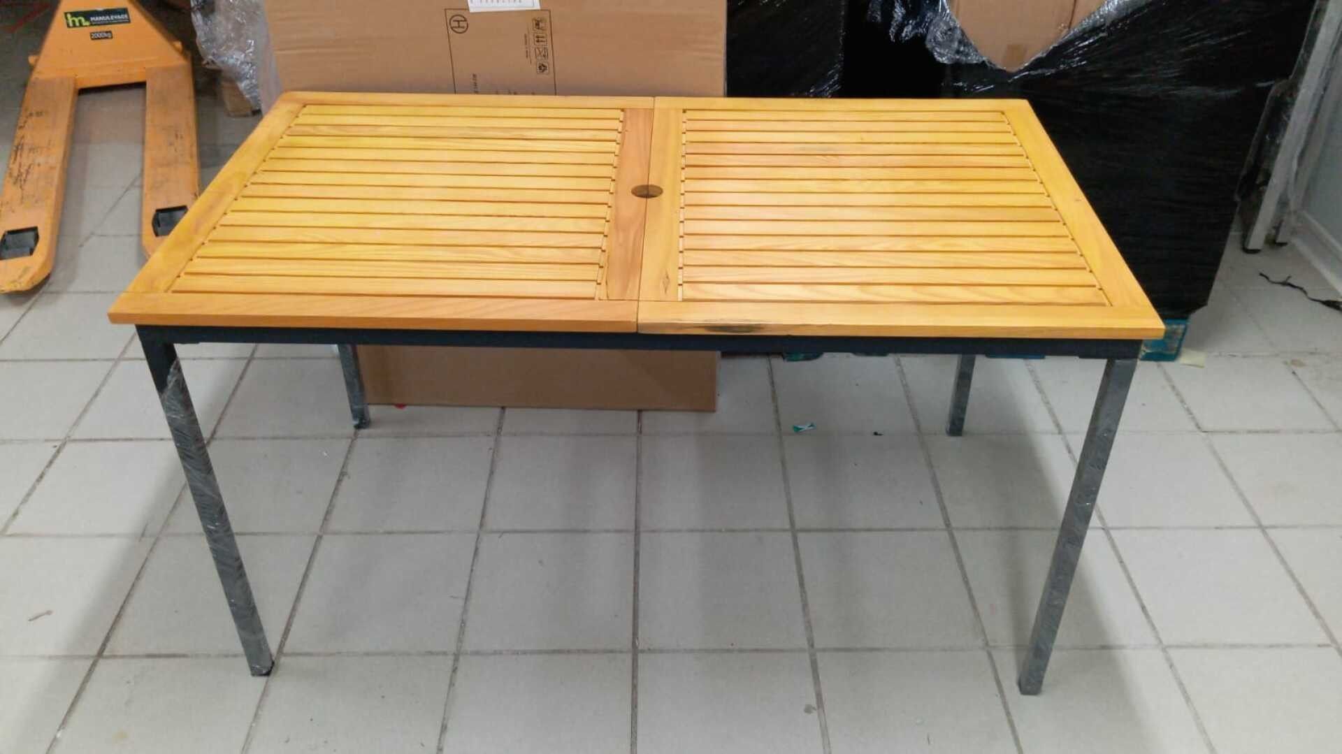 Outdoor table 140x80x74cm, acacia and metal - NEW, in cardbo…