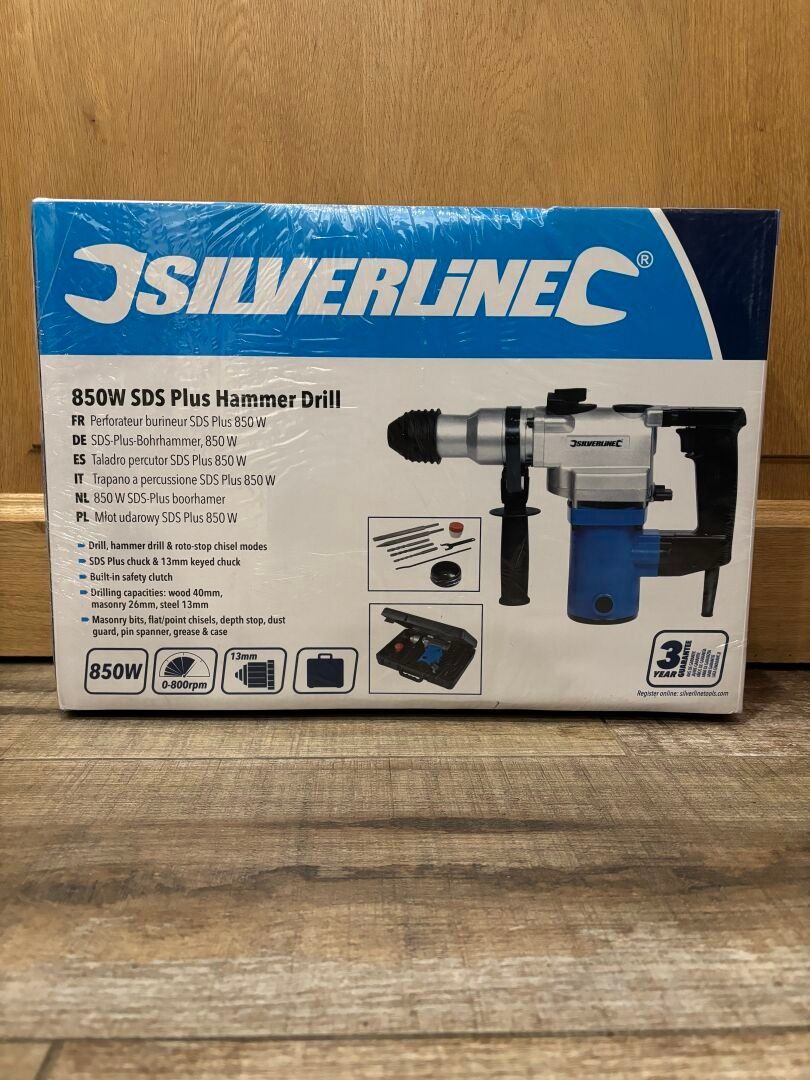 Silverline 850W 3.5J SDS-Plus chisel hammer drill with accessories in a SILVERLINE case - NEW, collect from Dampierre sur Boutonne depot or send via Mondial Relay