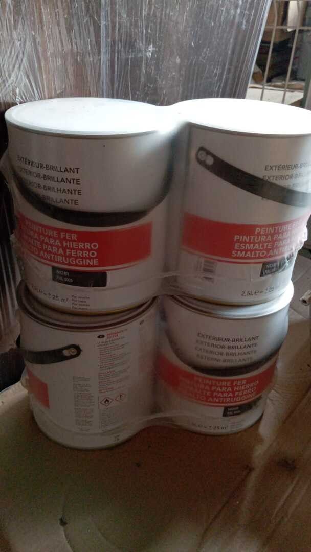 Batch of 4 pots of gloss black anti-rust paint, 2.5L pot - NEW, collection from Dampierre sur Boutonne depot or transport