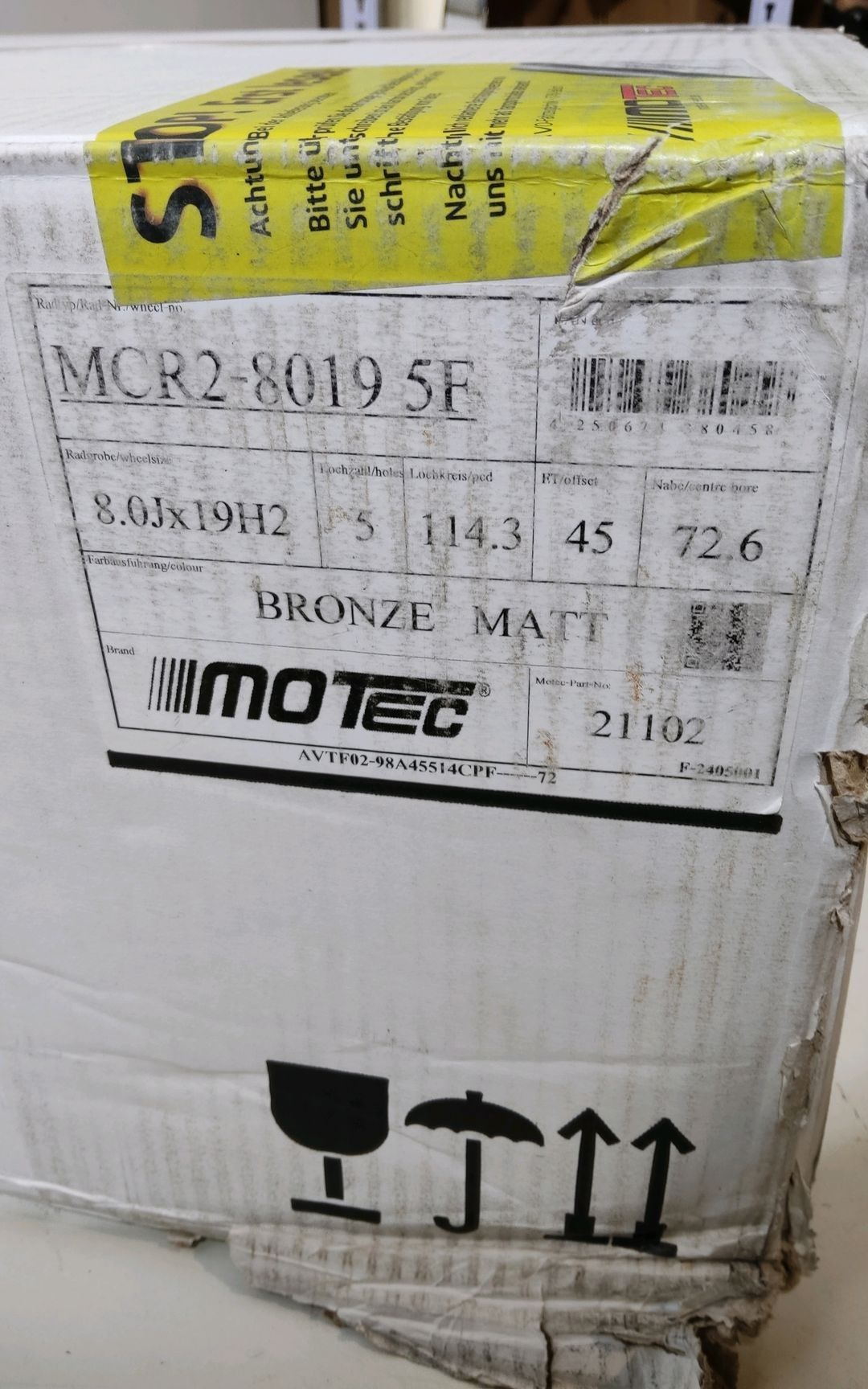 Aluminium rim - MOTEC - MCR2-Ultralight bronze matt on 19 INCHES - Brand new - Recoverable VAT - The first photo is generic, non-contractual, and provided as an example - This lot available everywhere in France from 28,92 € - This lot available everywhere in Europe from 54,96 €.