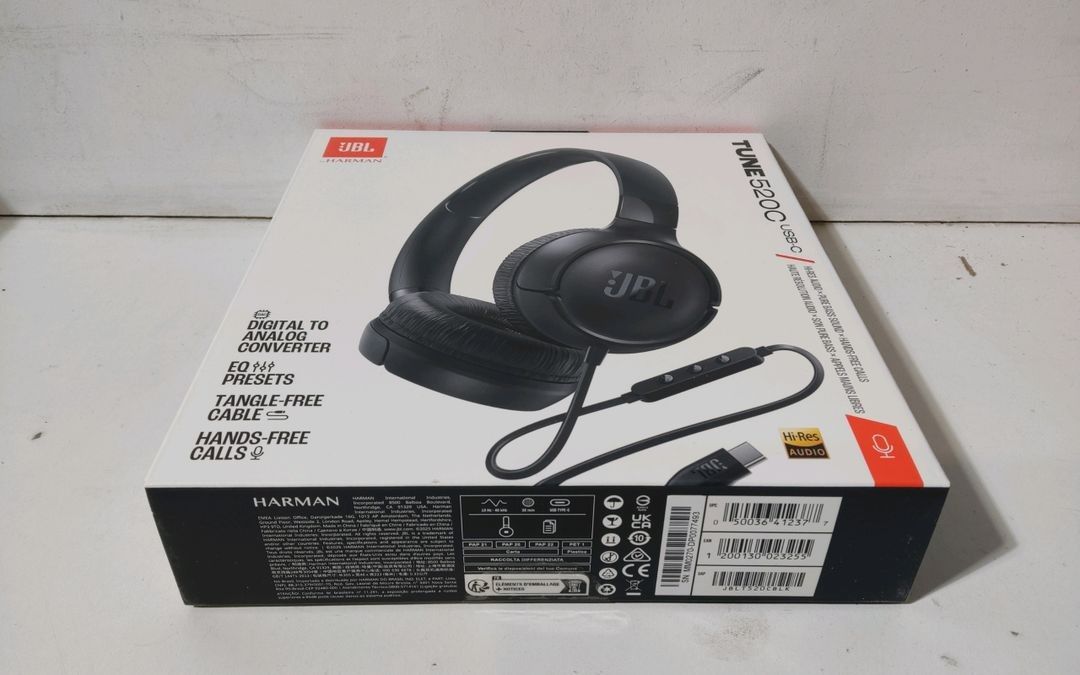 Wired headphones - JBL Tune 520 C - USB-C - Hi-Res audio - Black - Brand new - Recoverable VAT - The first photo is generic, non-contractual and provided as an example - This lot available everywhere in France from € 12.24 - This lot available everywhere in Europe from € 18.00