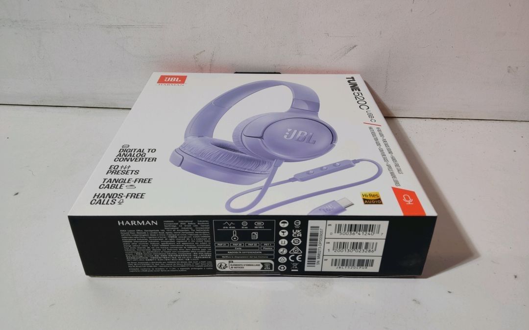 USB-C Headphones JBL Tune 520C violet - Brand new - Recoverable VAT - The first photo is generic, non-contractual and provided as an example - This lot available everywhere in France from 12,24 € - This lot available everywhere in Europe from 18,00 €.