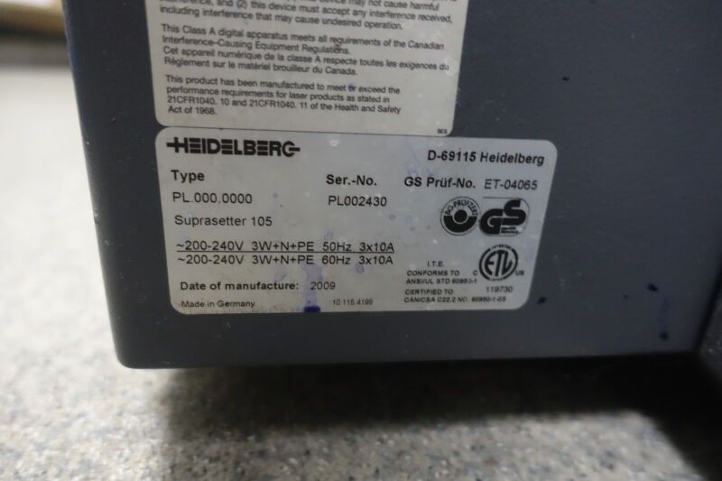 ON DESIGNATION: One HEIDELBERG Suprasetter 105 printing machine: