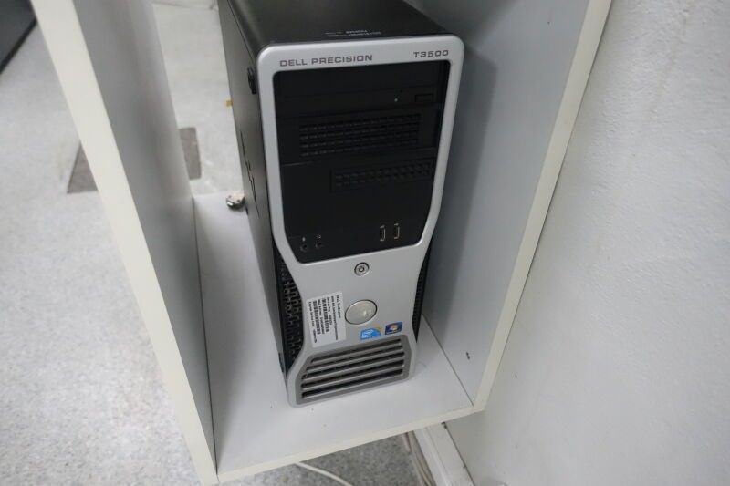 A computer configuration consisting of a DELL PRECISION T3500 central processing unit, Intel XEON inside processor - Windows 7, a SAMSUNG SyncMaster B1940 screen, keyboard and mouse on a console.