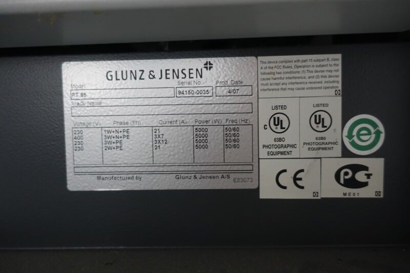 One plate processor GLUNZ & JENSEN model PT 85 serial n° 94150-0035 year 2007