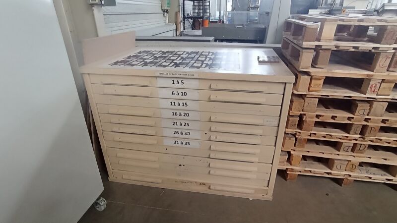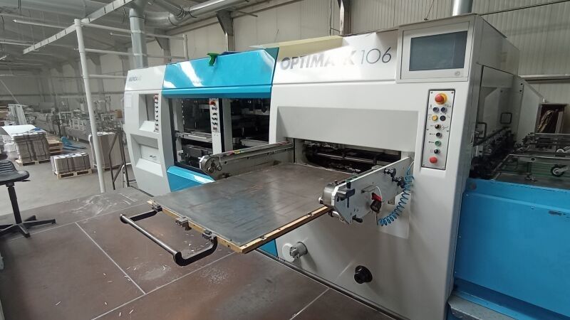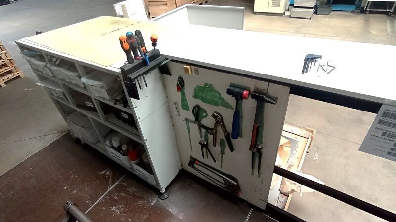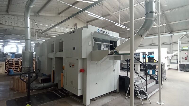 ON DESIGNATION: A KBA (KOENIG & BAUER GROUP) flatbed cutting machine model IBERICA AG type OPTIMA-K 106 year 2017 serial n° 8817181, with platform, desk counter, high seat and hand tools (screwdrivers, hammers, saw, pliers, torx...) - tools and machine accessories