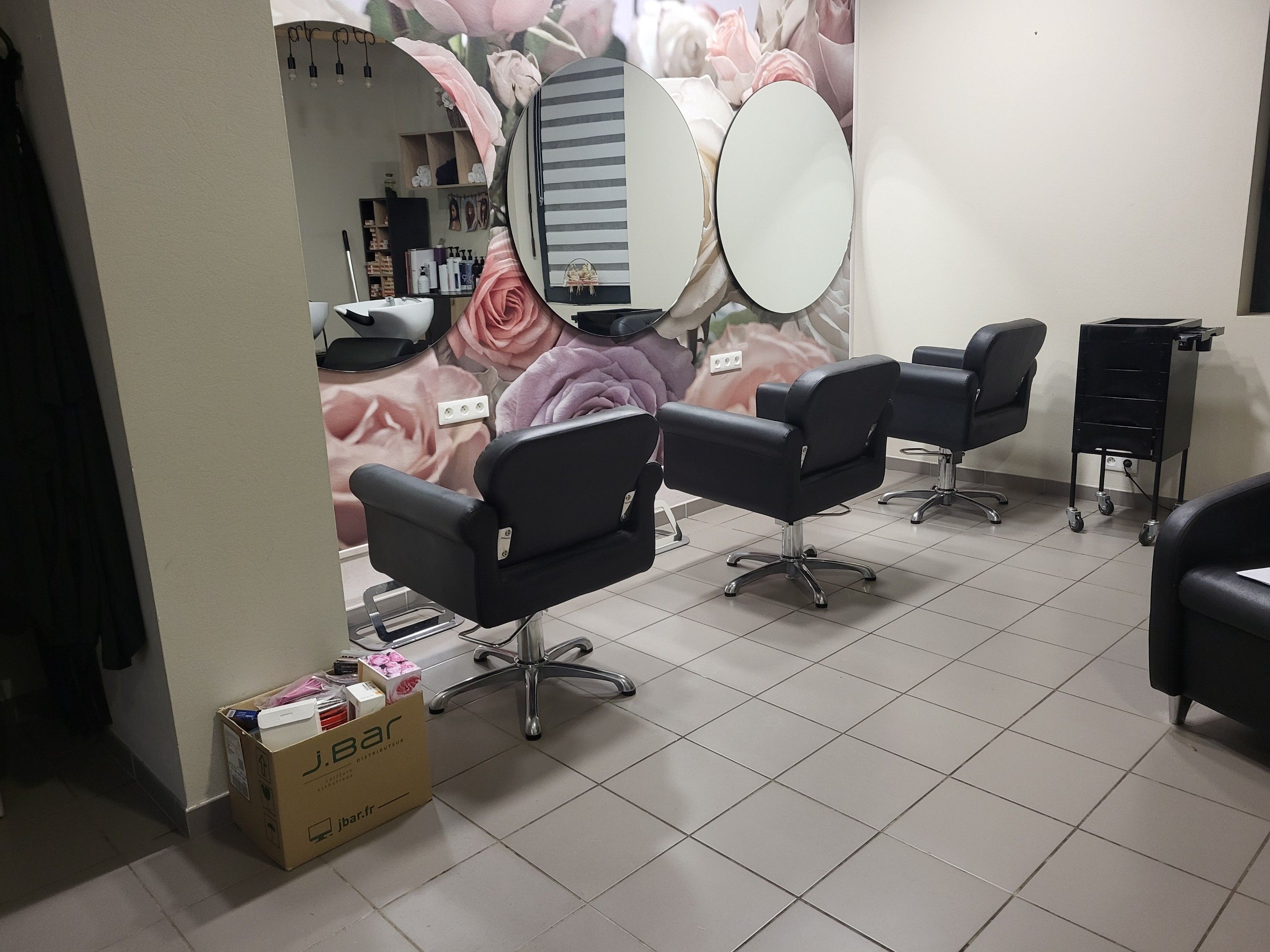 EXT - 2 single-seater shampoo benches, upholstered in black …