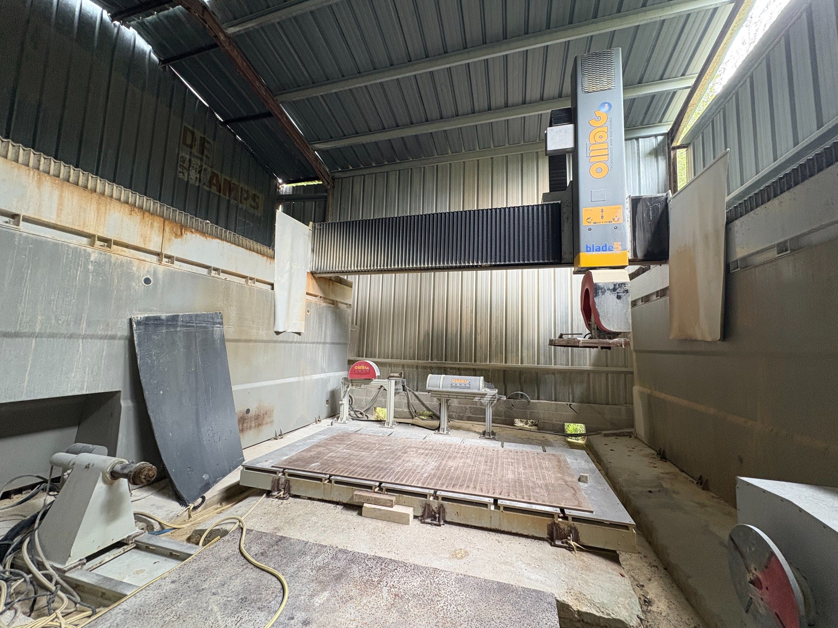 EXT - Combined machining centre - lathe OMAG For stone Type BLADE 5 Year 2019 With numerical control 5 AXES x-axis useful stroke 4000 mm y-axis 3920 Z-axis. 1500 C-axis Rotation from zero to 200 degrees B-axis inclination +/_ 140 degrees Steel Y-axis support Workbench 3.740 * 1.950 mm ISO50 tool magazine with 6 stations Automatic disc changer on CONO ido 50 Max. diameter 625 mm Numerically controlled lathe Spindle 3600 mm Diameter 1000 mm Complete with electrical cabinets Only need to replace the HT/BT control box Estimated at 6500 sur ht