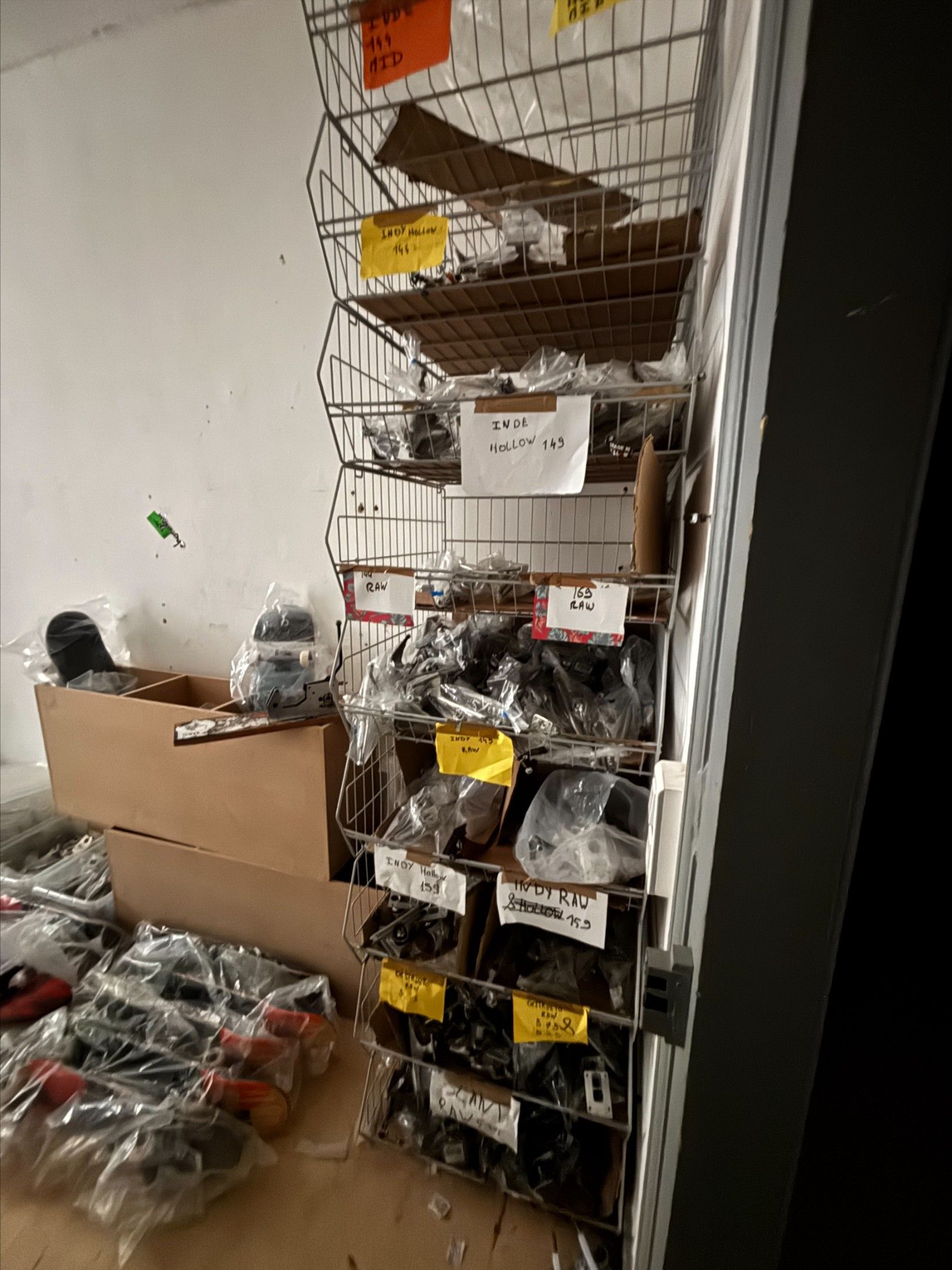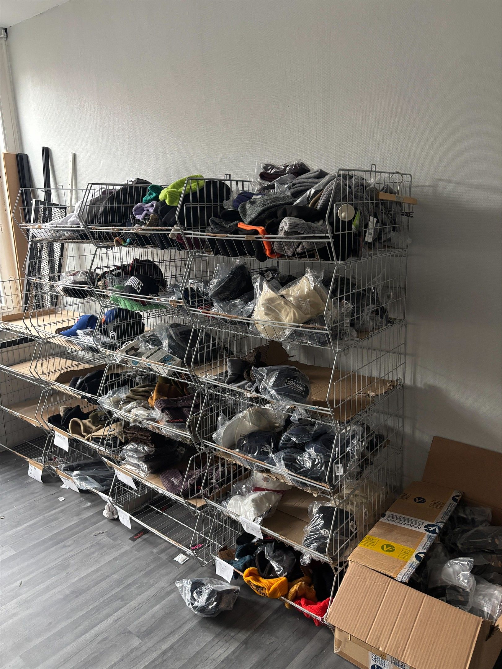 - Large stock of clothing: many items, socks, tops, accessories, hats, caps.