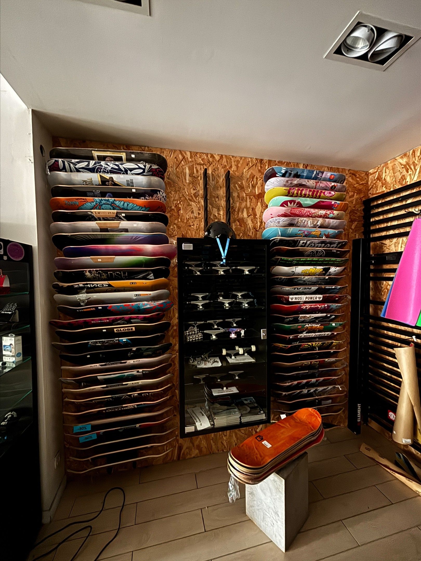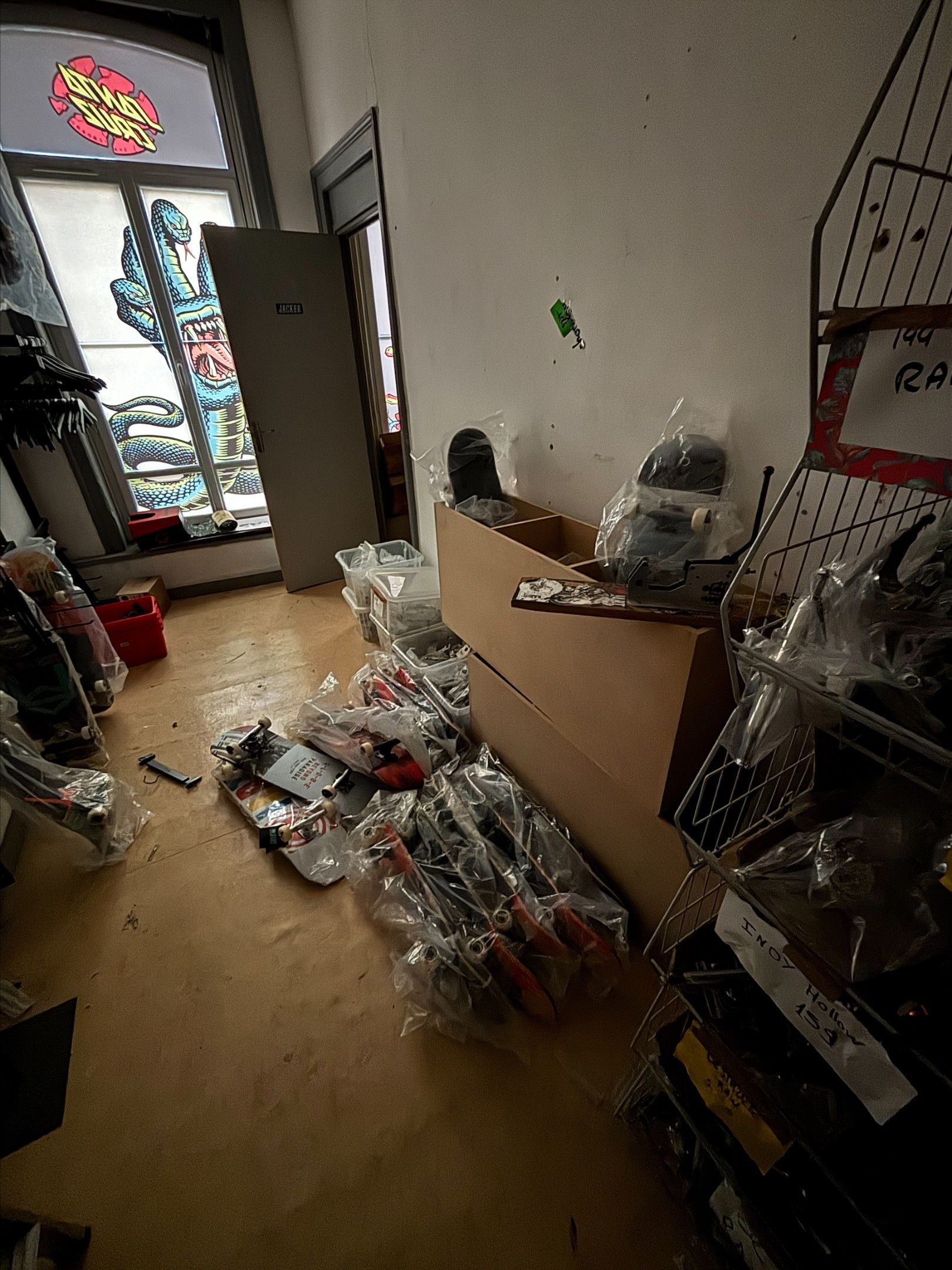 - large stock of skateboards, bearings, wheels, trucks, screws and bolts