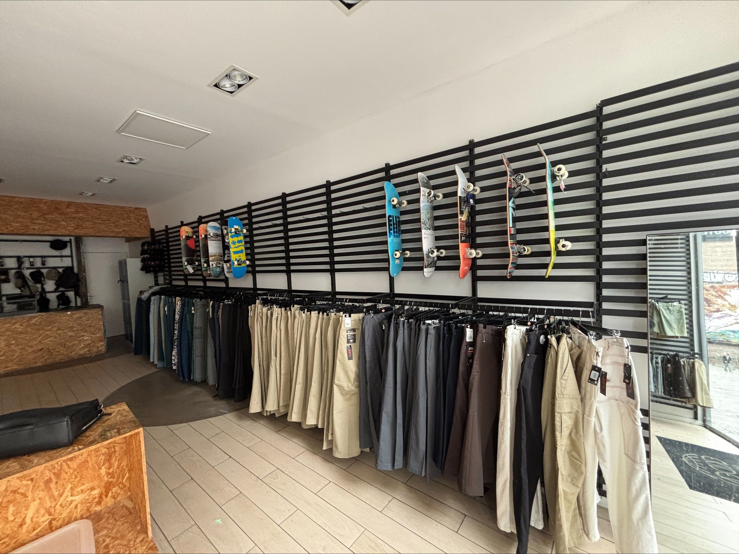 Many major brands: Dickies, Volcom, Jacker, RIP'N'DIP, New Balance, HUF, etc.