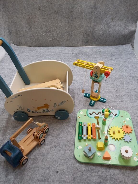 MOULIN ROTY wooden walking trolley + JANOD wooden activity t…