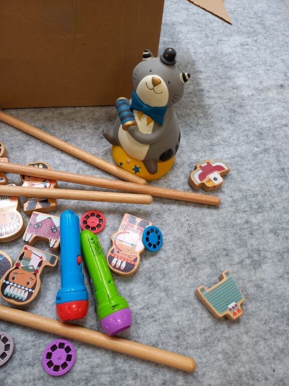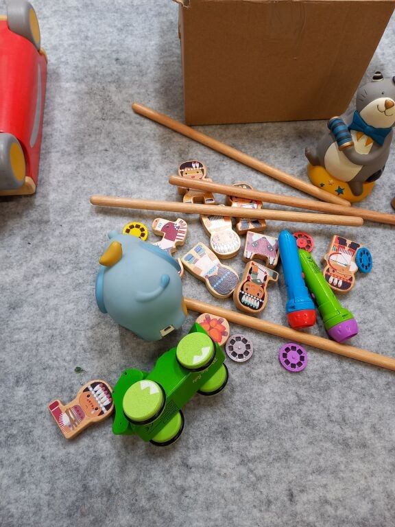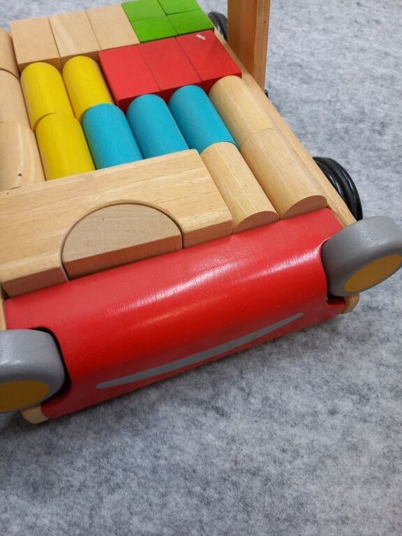 Wooden walking trolley with PLANTOYS cubes + wooden games in…