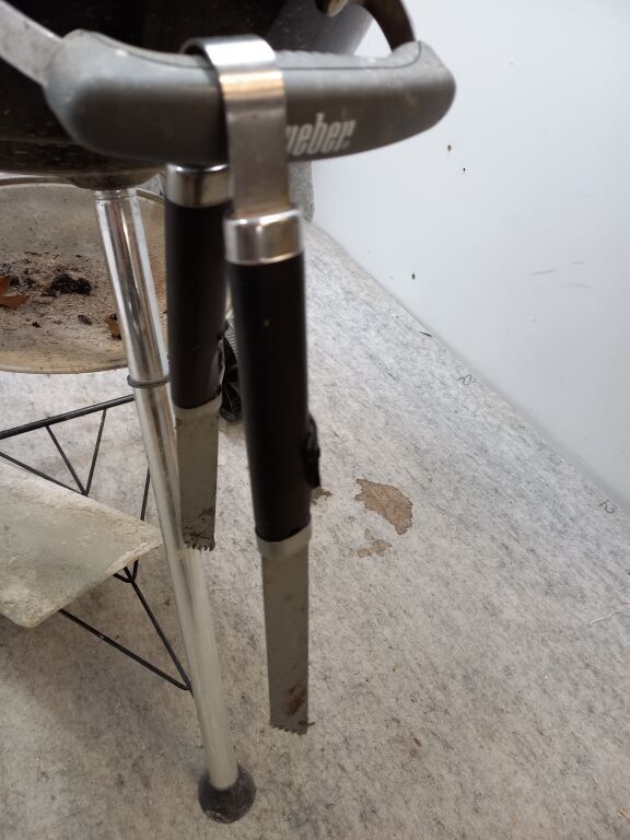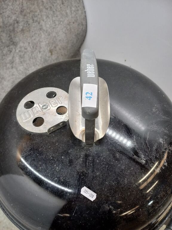 WEBER charcoal barbecue on wheels (traces of use, untested, with its tongs)