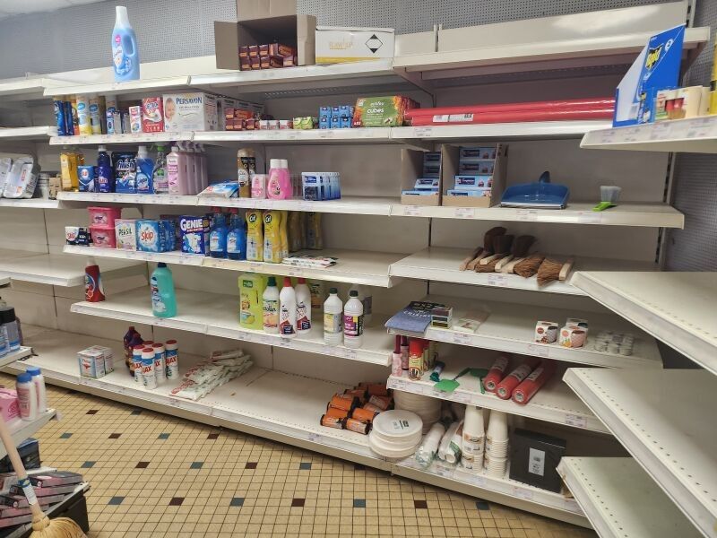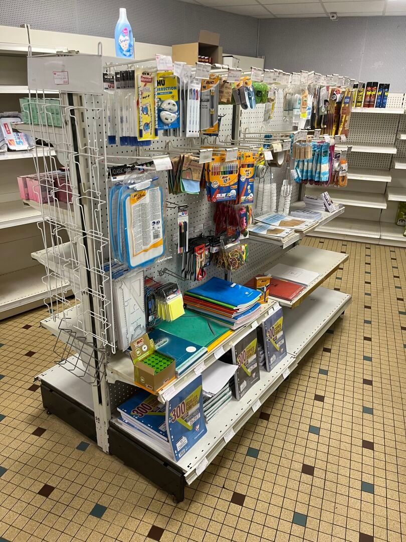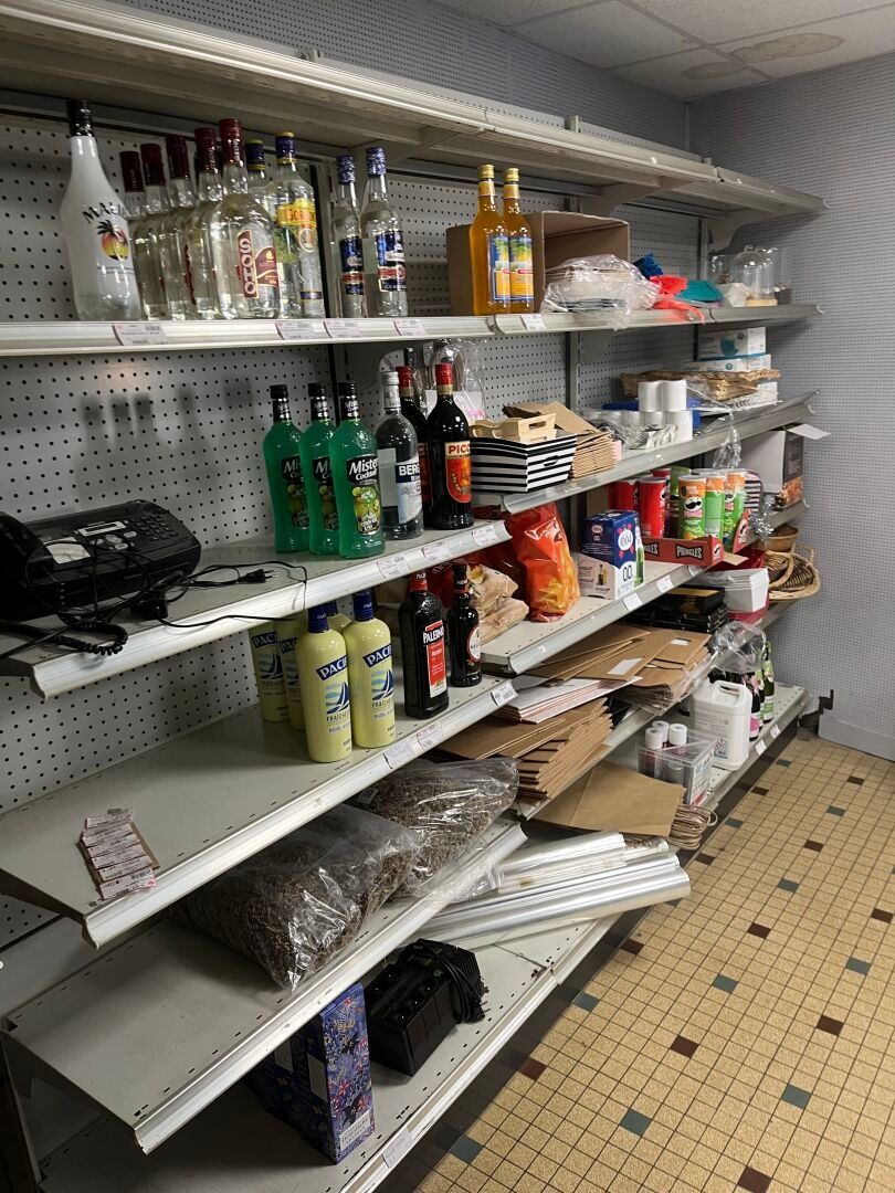 Residual stock: preserves, pasta, stationery, animal feed, cleaning and personal care products, soft drinks, wines (approx. 78 bottles) and spirits (approx. 43 bottles), groceries, etc.