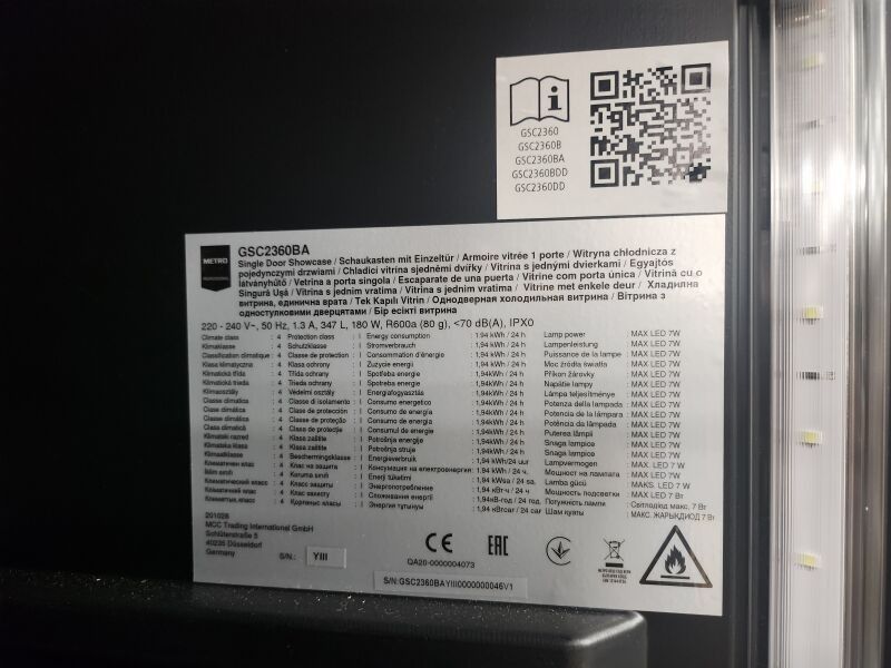 High opening refrigerated display case with 1 door, METRO GSC2360BA integrated unit (working),
