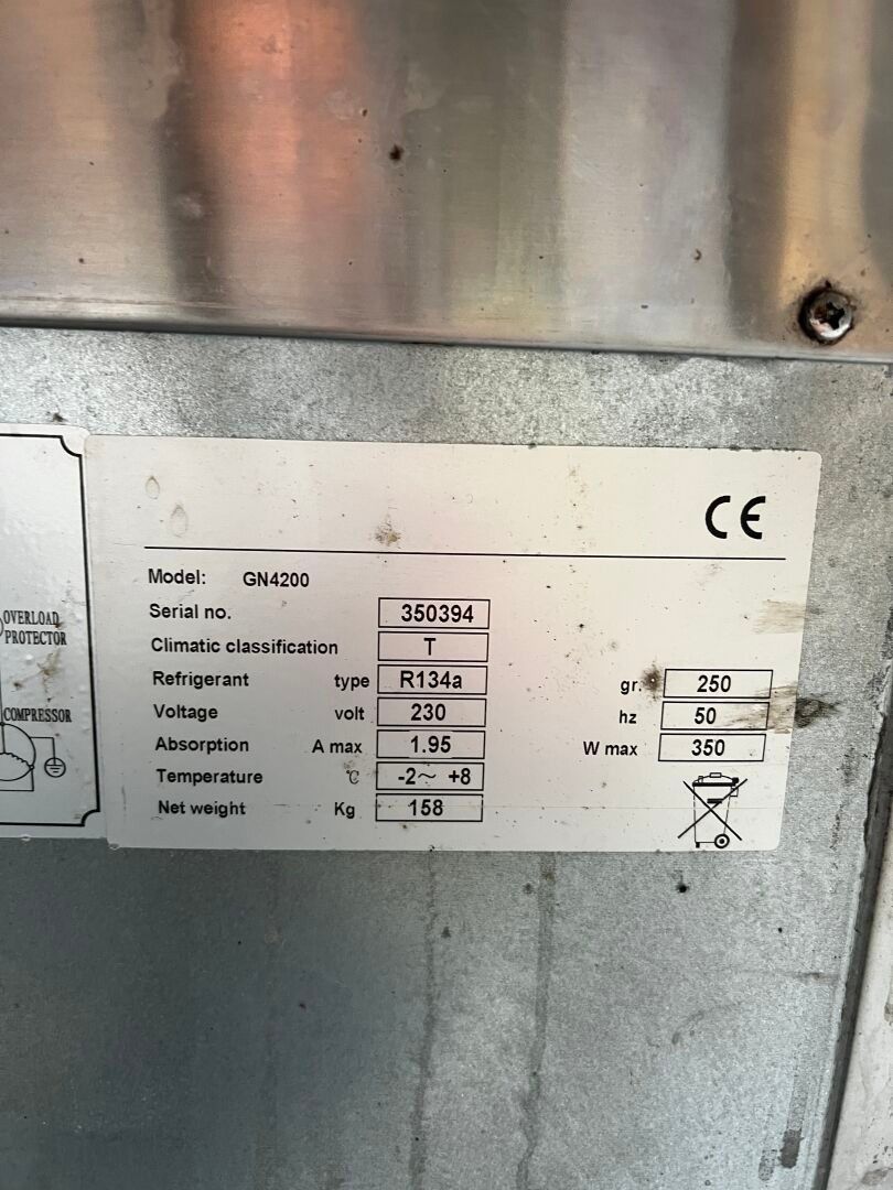 FURNOTEL tower fridge, model: GN4200, n°350394, stainless steel frame,