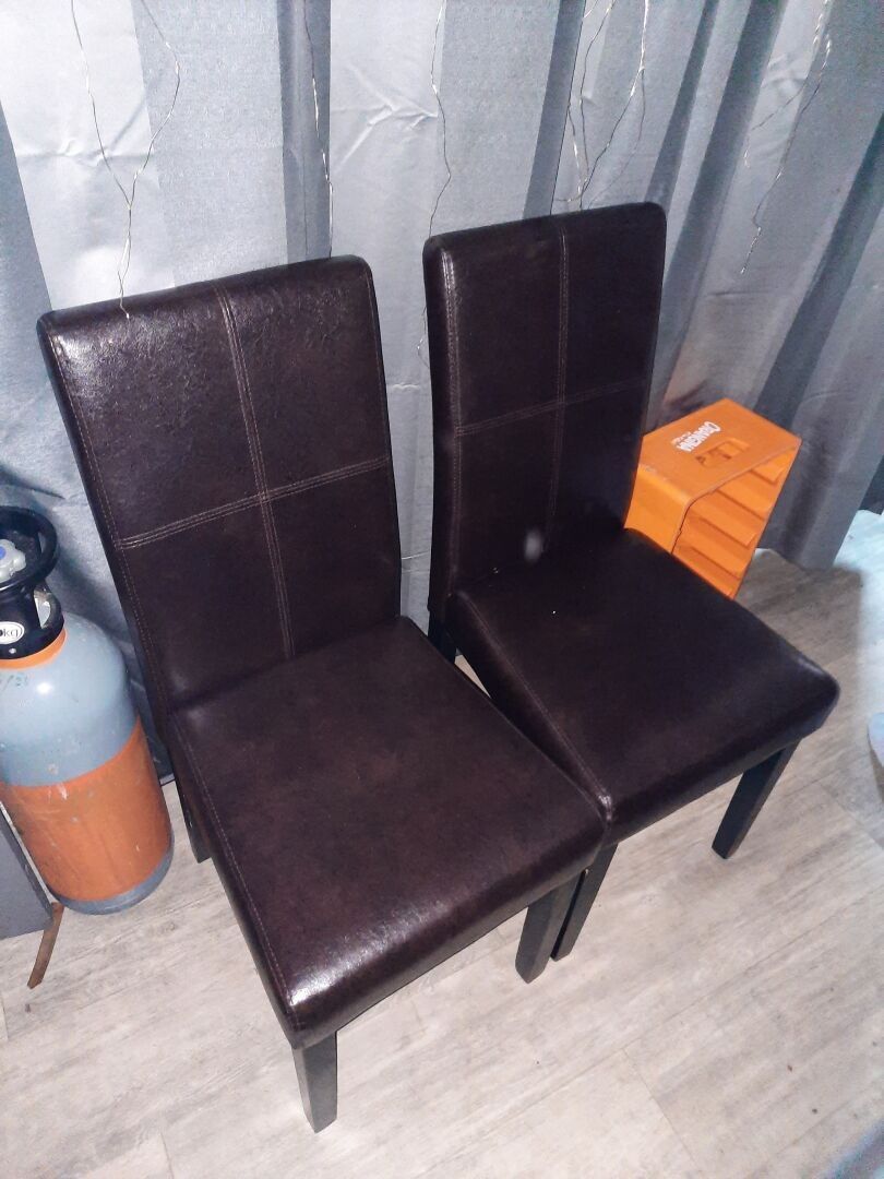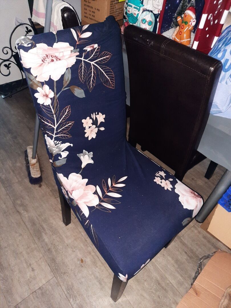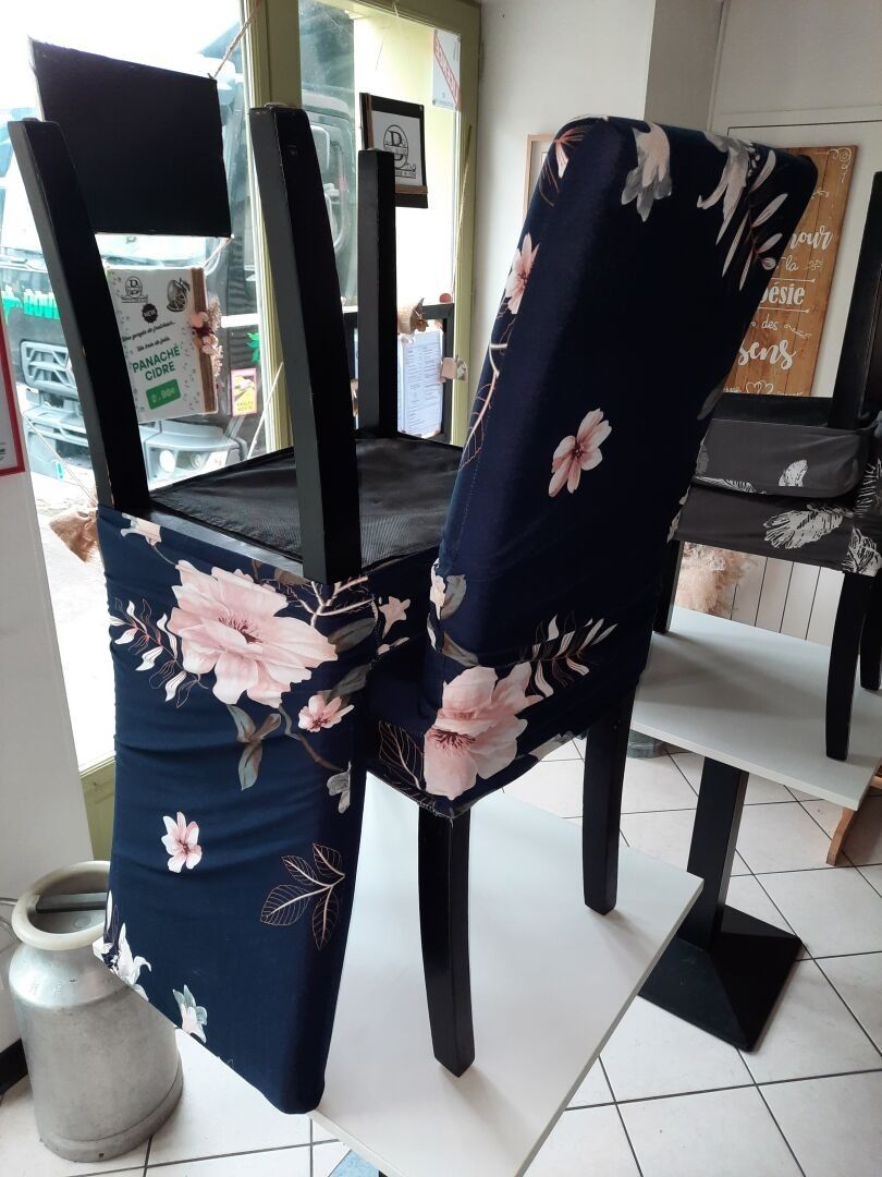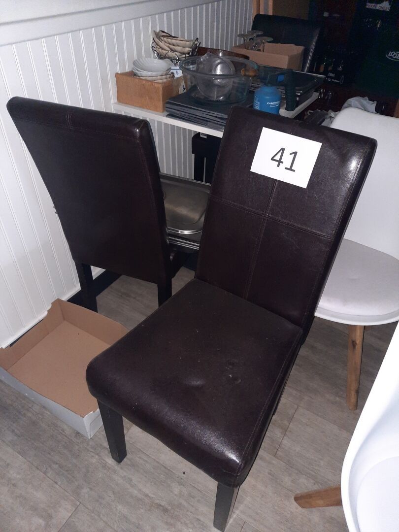 22 chairs, seats in black imitation leather (some upholstered in floral fabric)