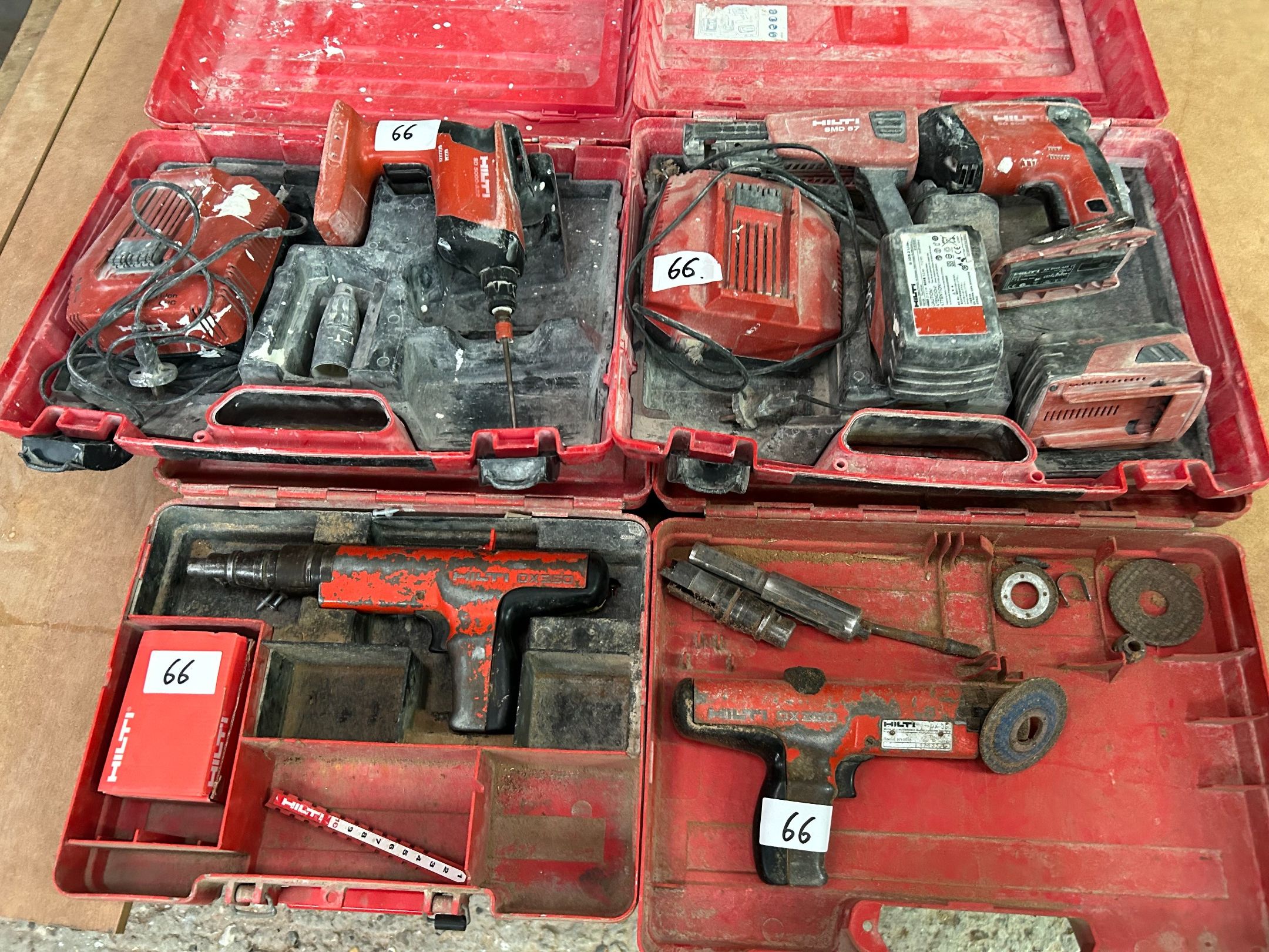 Hilti DX 350 nail gun, 2 Hilti SD 5000 plasterboard screw guns, Hilti DX350 nail gun