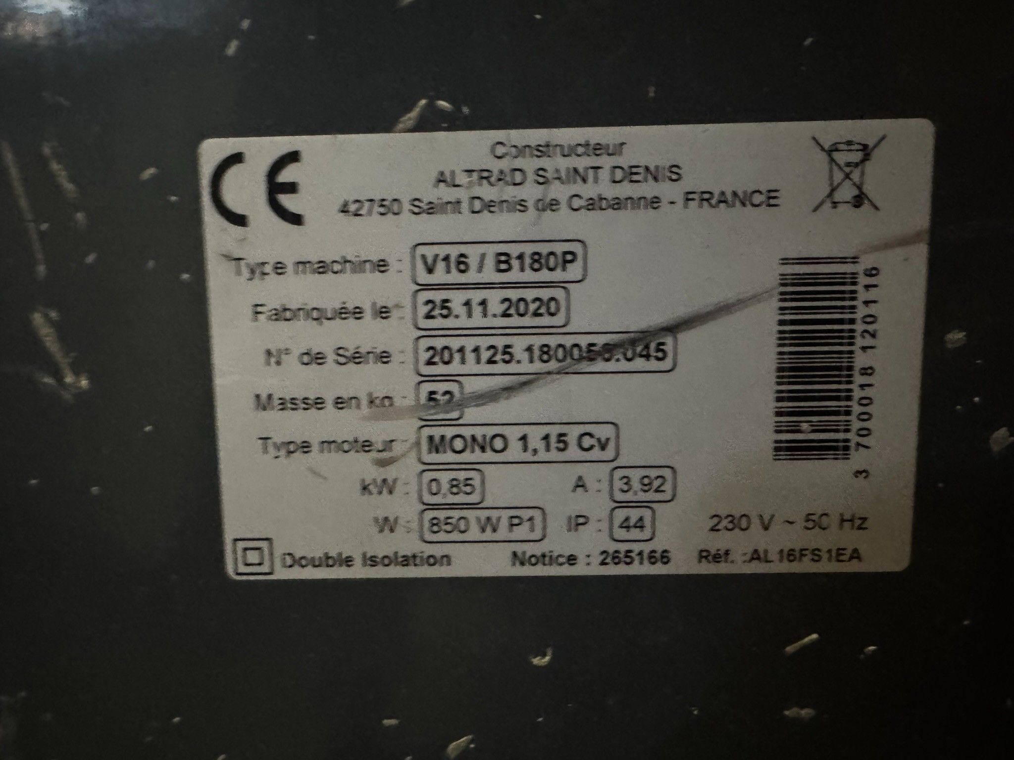 1 Altrad V16 / B180P electric concrete mixer