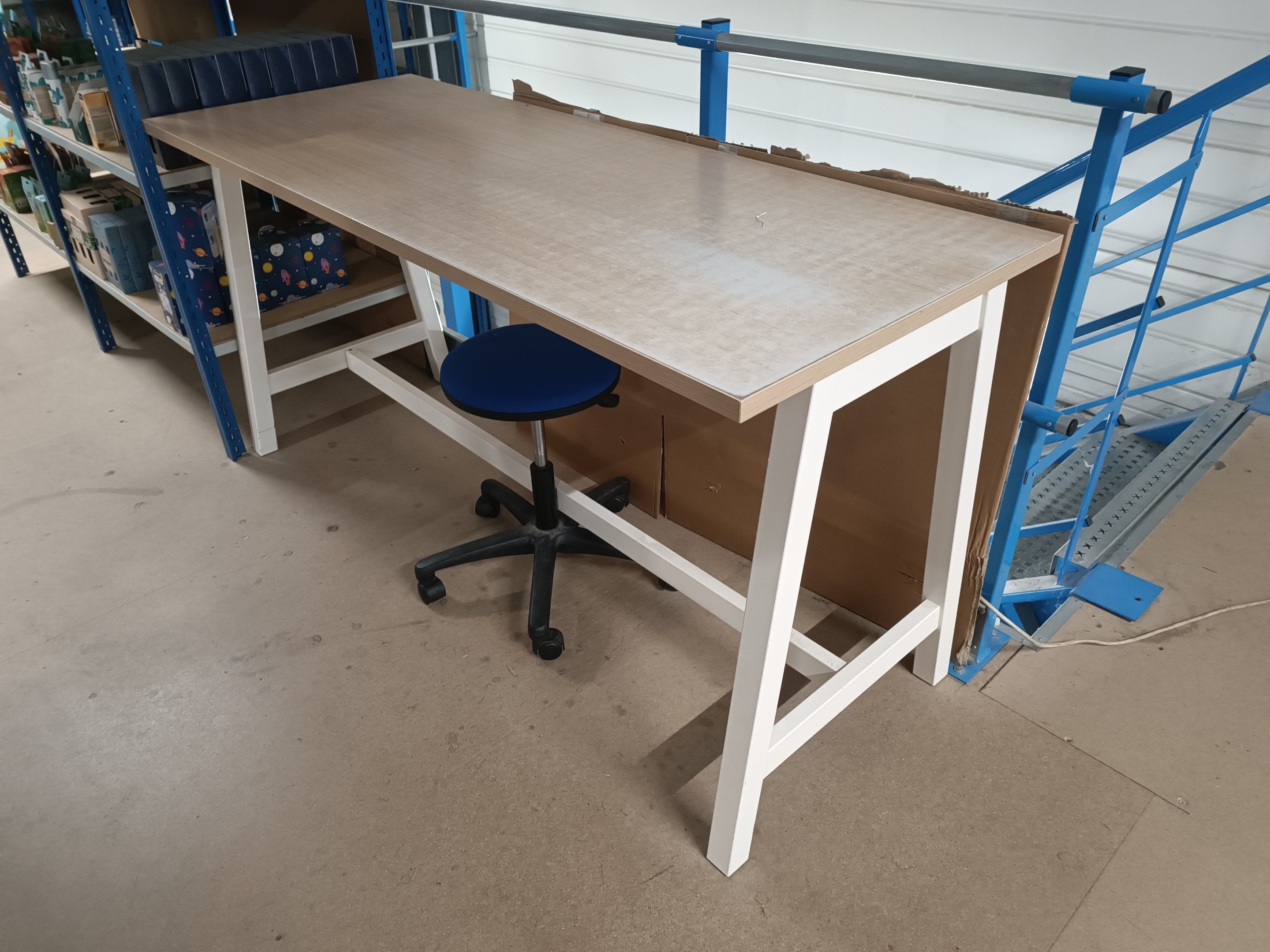 3 Laminated wood desks 2X 90x141x70 and 1X 90x182x70 / 1 Desk stool