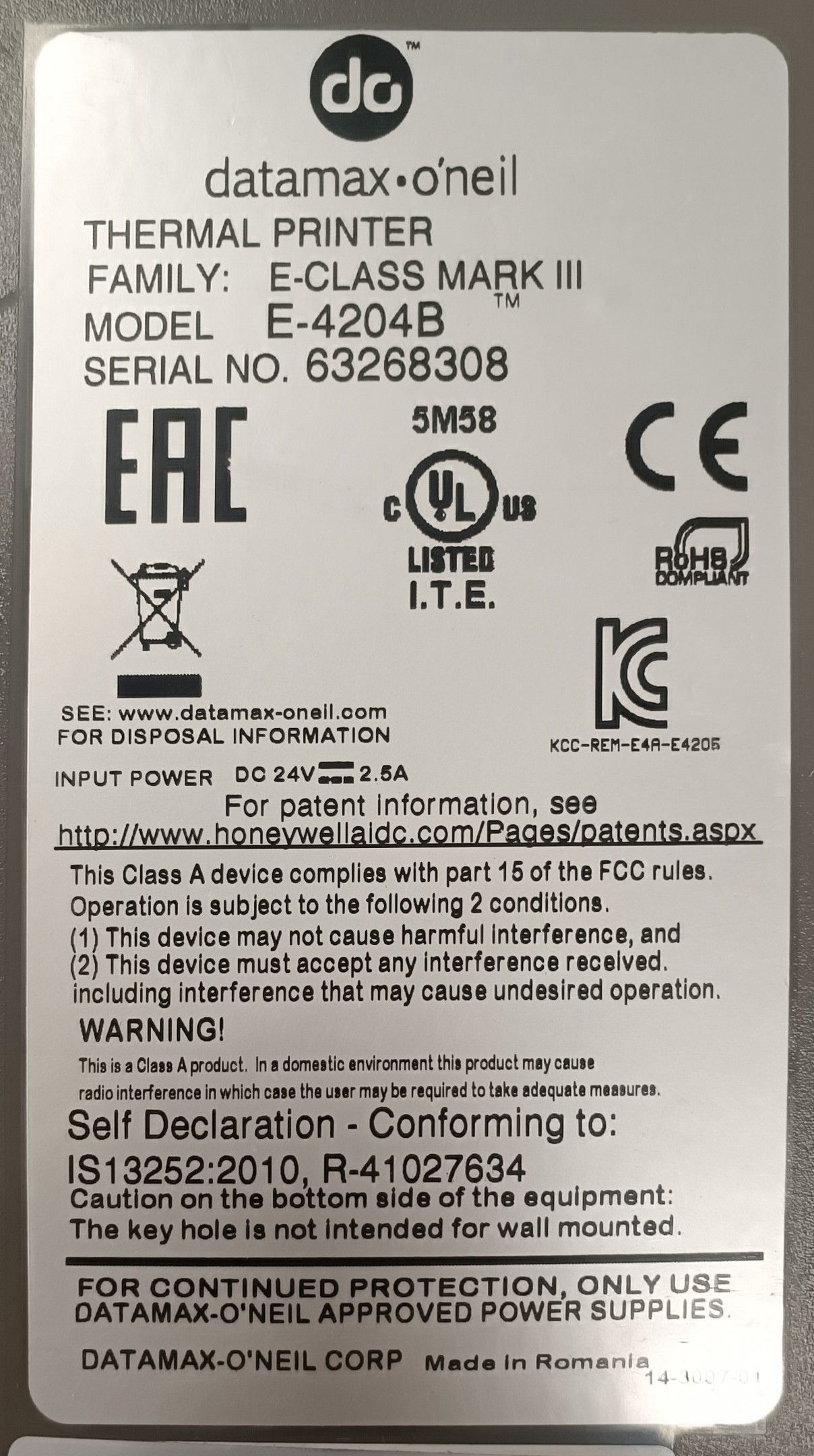 DATTAMAX O'NEIL label printer Ref: E-4204B with +- 3000 labels