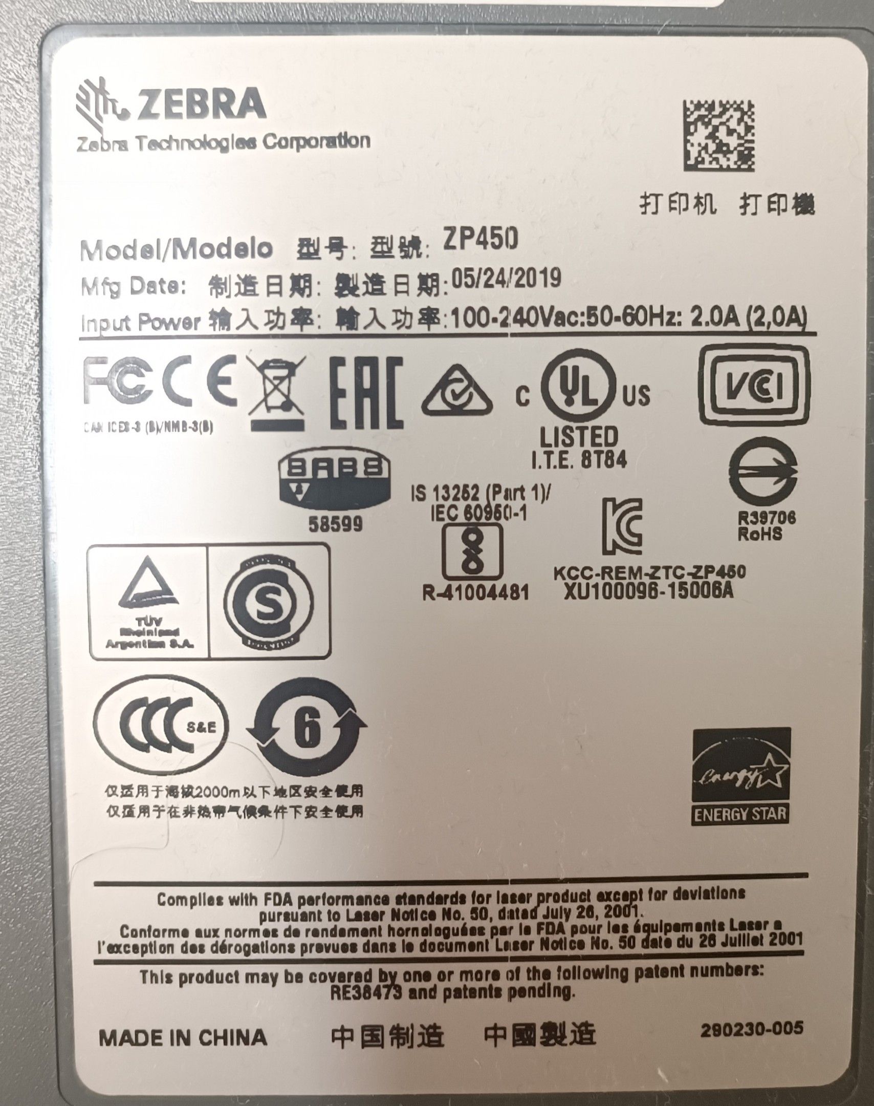 ZEBRA label printer Ref: ZP450 with 2 rolls of labels