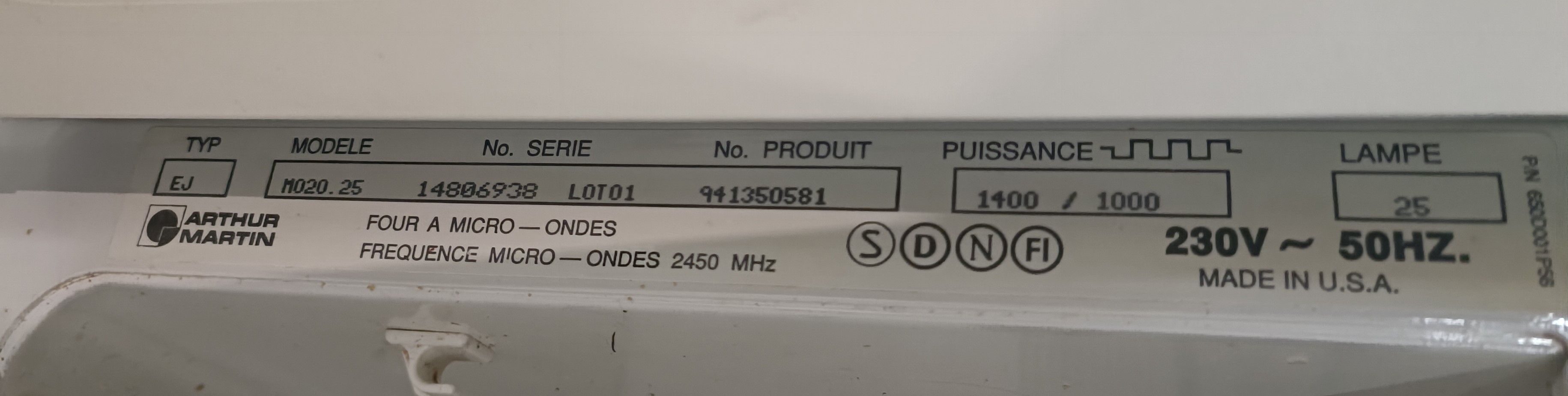 TOP LISTO fridge Ref: RTFL85-50b2 / ARTHUR MARTIN microwave …