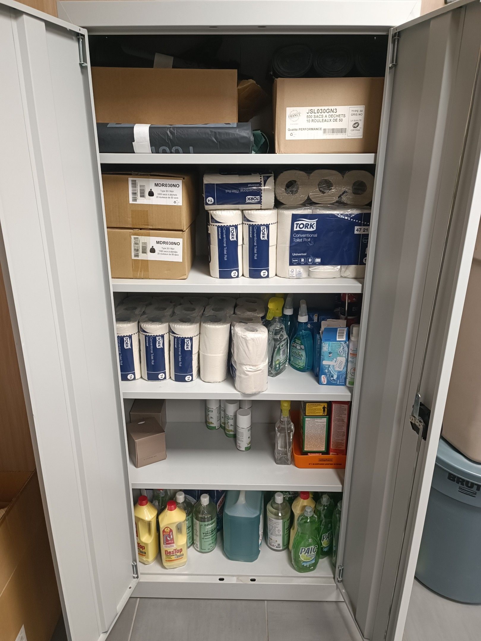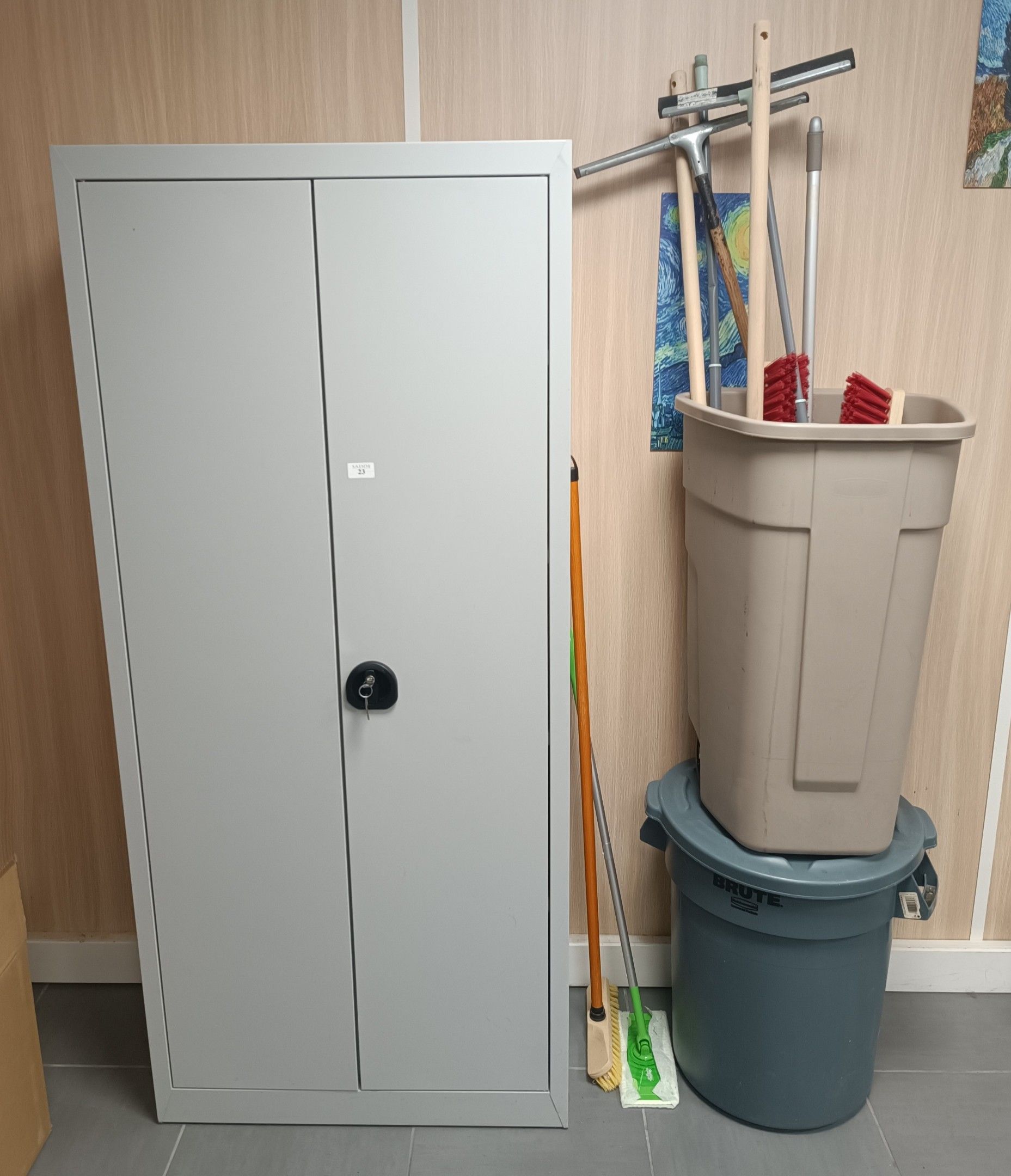 2-door metal cupboard 180x80x40 with stock of cleaning produ…