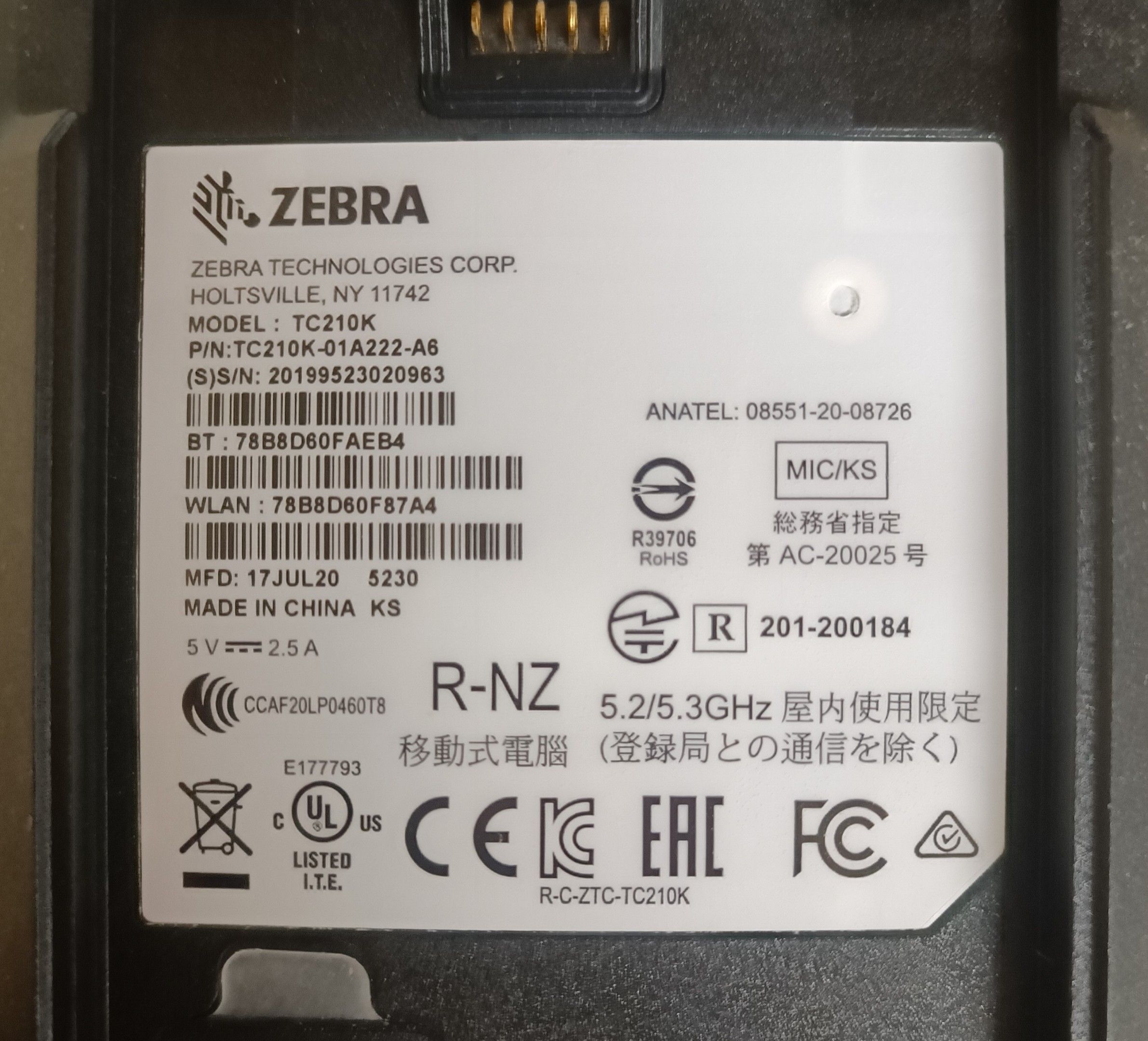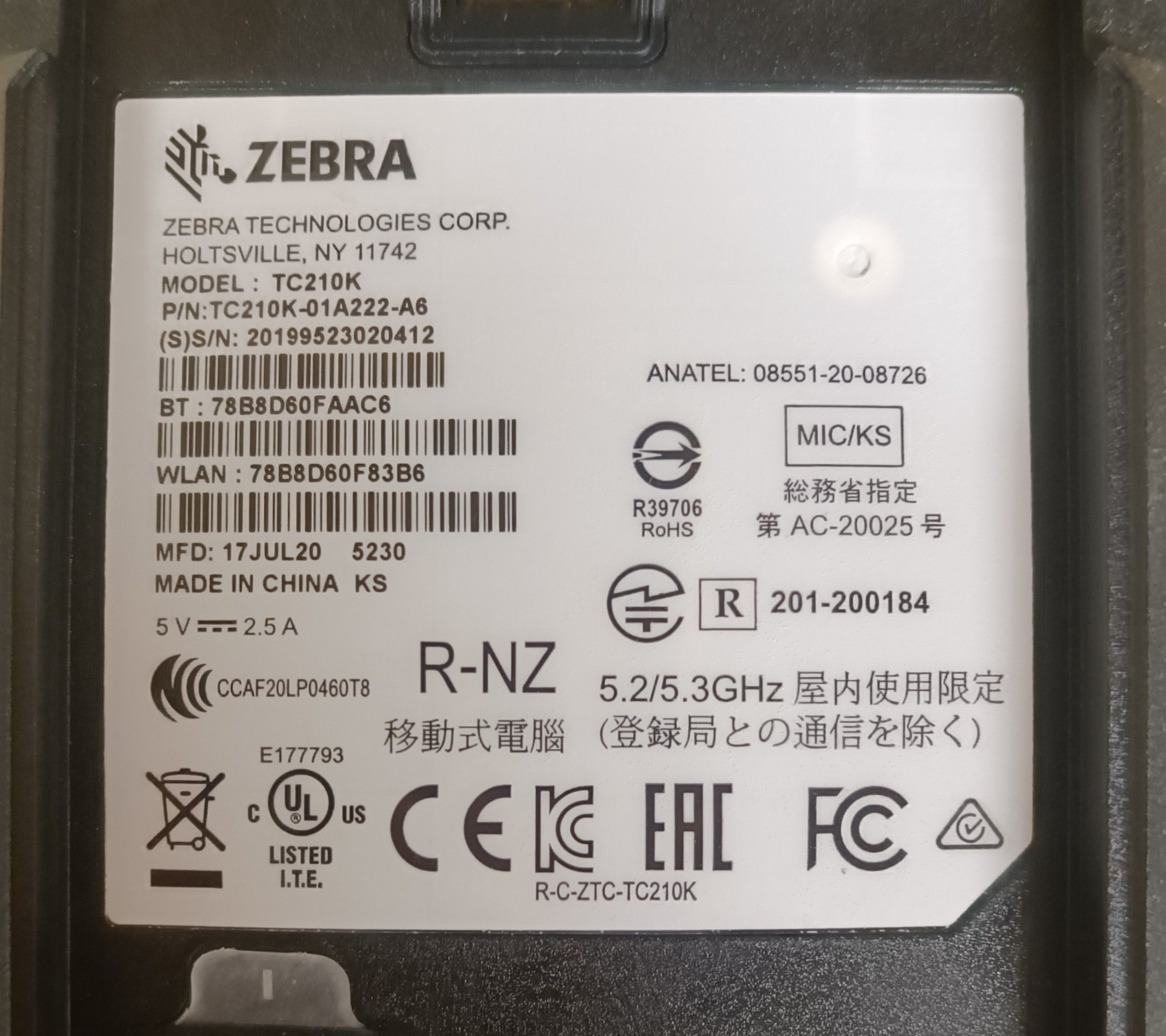 2 ZEBRA PDA Ref: TC210K with 2 handles and 2 chargers