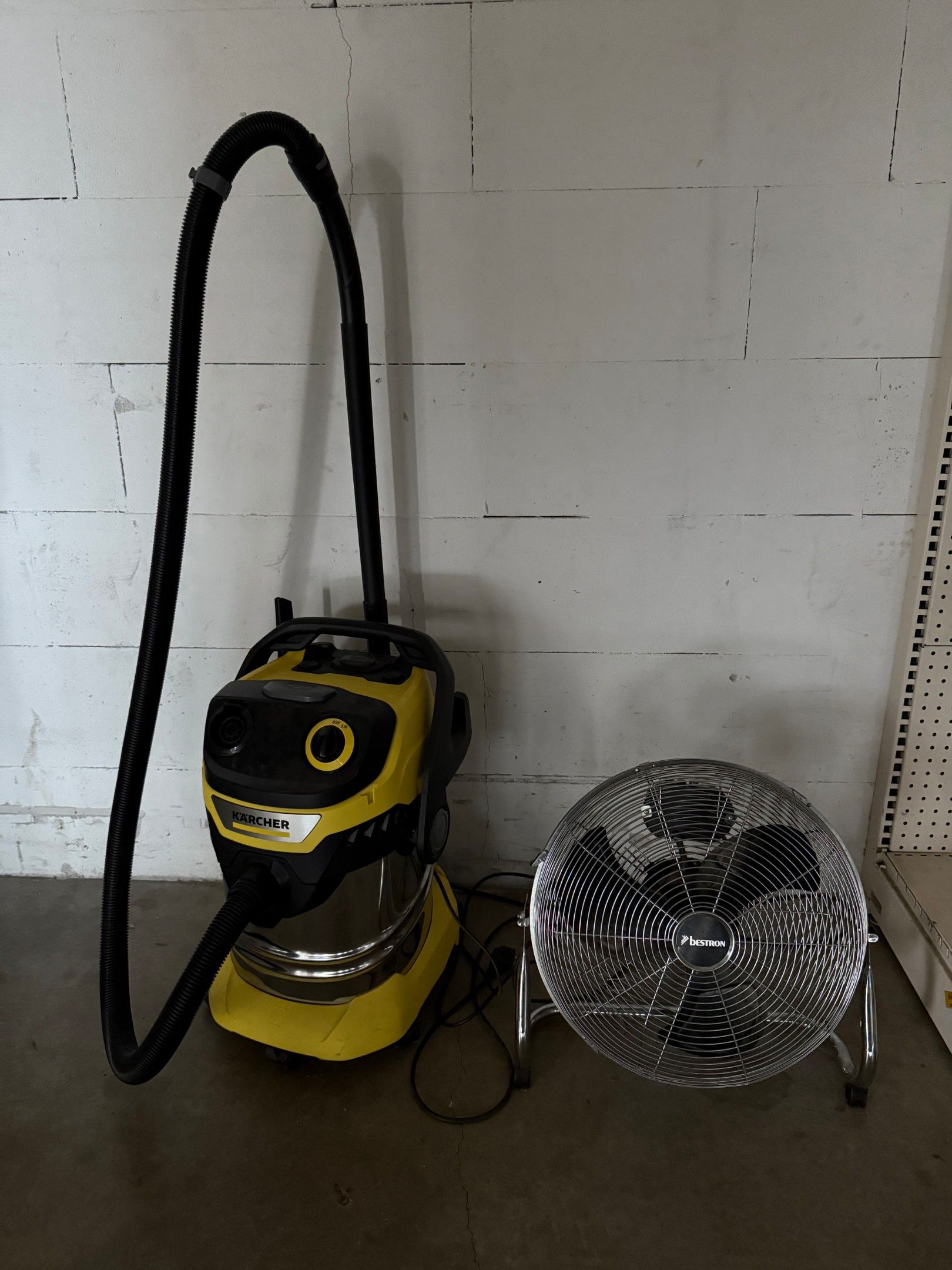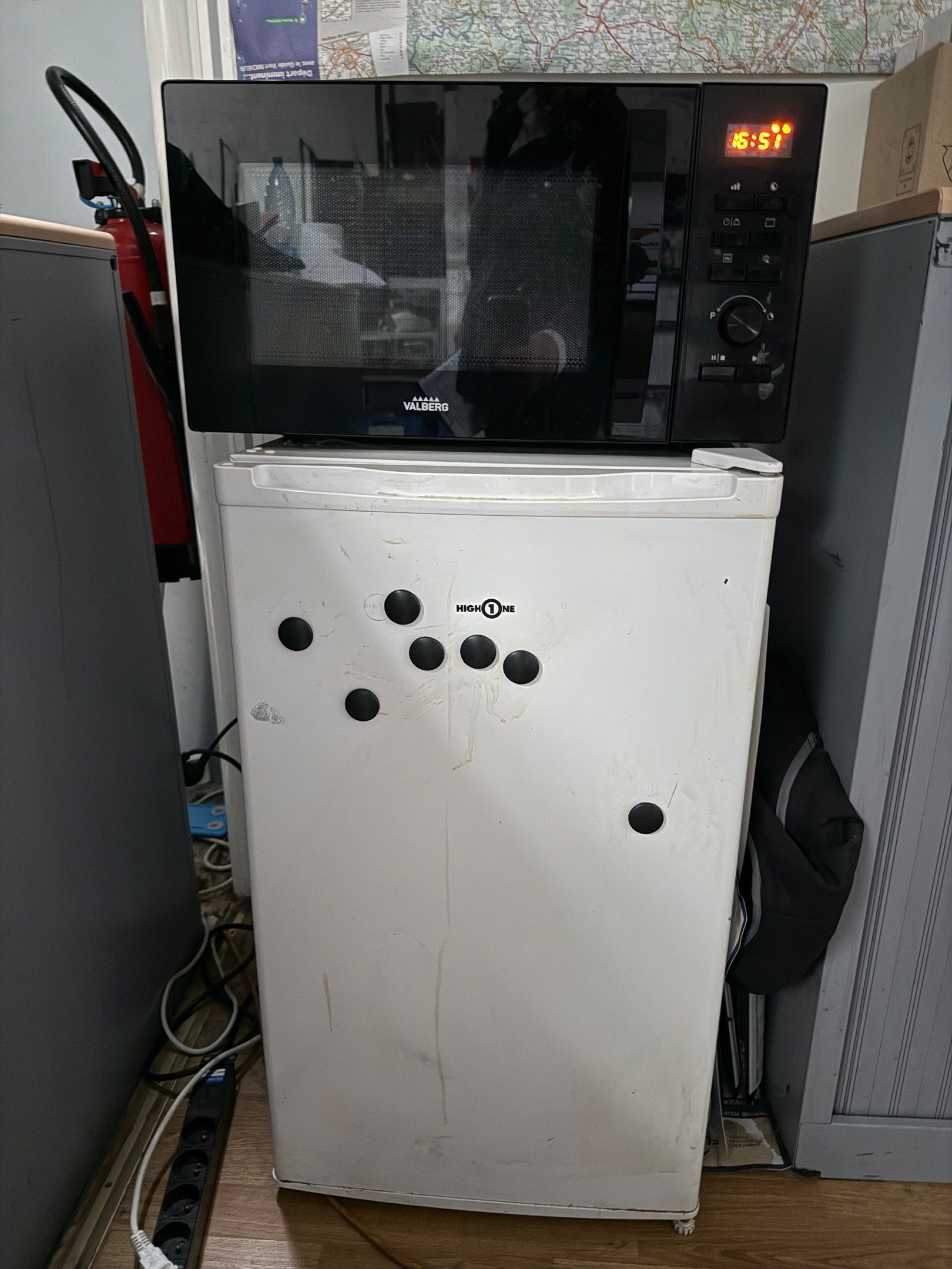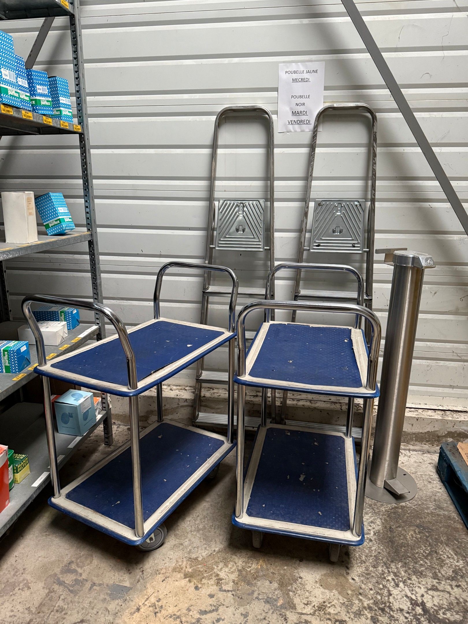 LOT : Stand-up table and 3 stools - Fridge - Microwave oven - KARCHER hoover - 2 trolleys and 2 stepladders.